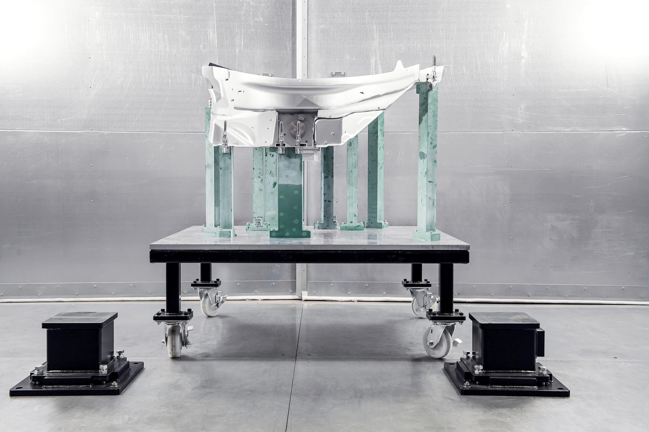 Este desportivo de quatro portas contará com esta nova solução para a conceção da sua estrutura, sendo apresentada como uma plataforma de baixo peso e altamente rígida, oferecendo vantagens em termos de performance e ambientais. Fundir as principais partes da estrutura numa única peça de alumínio reduz o peso, o que, por sua vez, melhora a eficiência energética aumentando a autonomia do automóvel.
