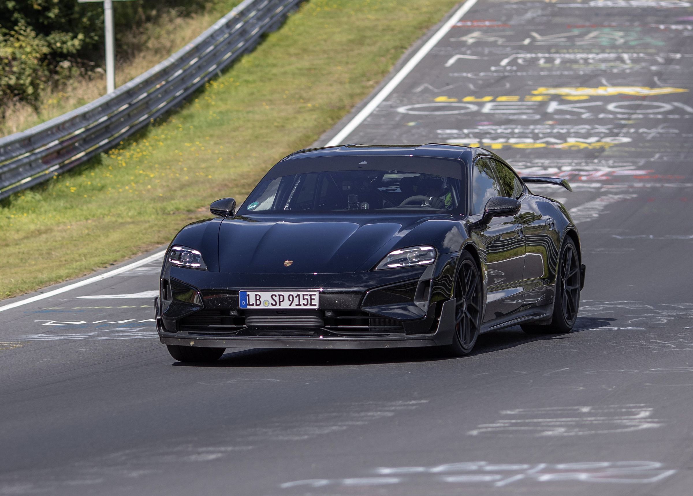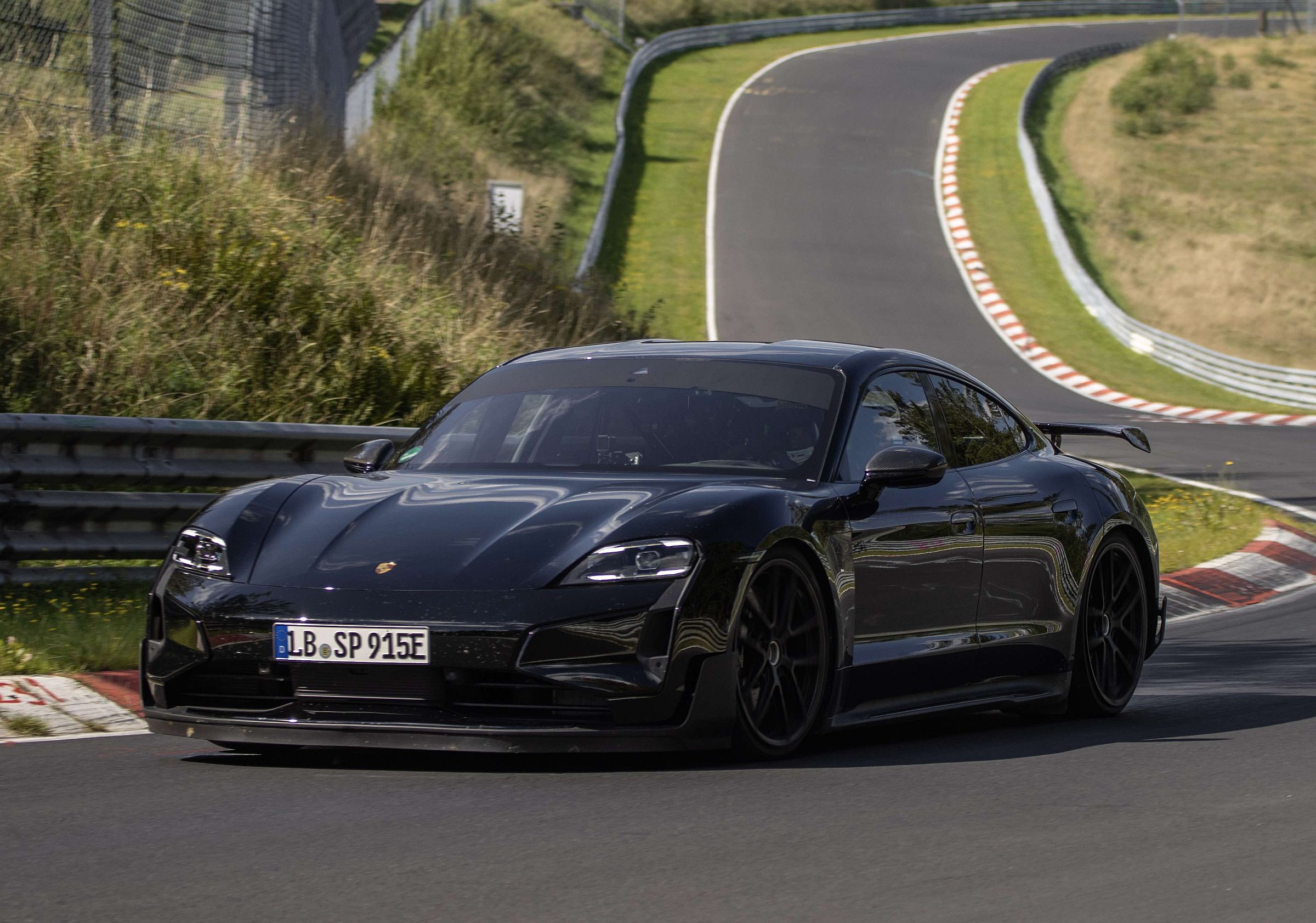 O piloto de desenvolvimento da marca alemã, Lars Kern, voltou a ter a seu cargo a tarefa de extrair o máximo potencial do Taycan, tratando-se já da versão evoluída que a Porsche prepara para introduzir em 2024.
