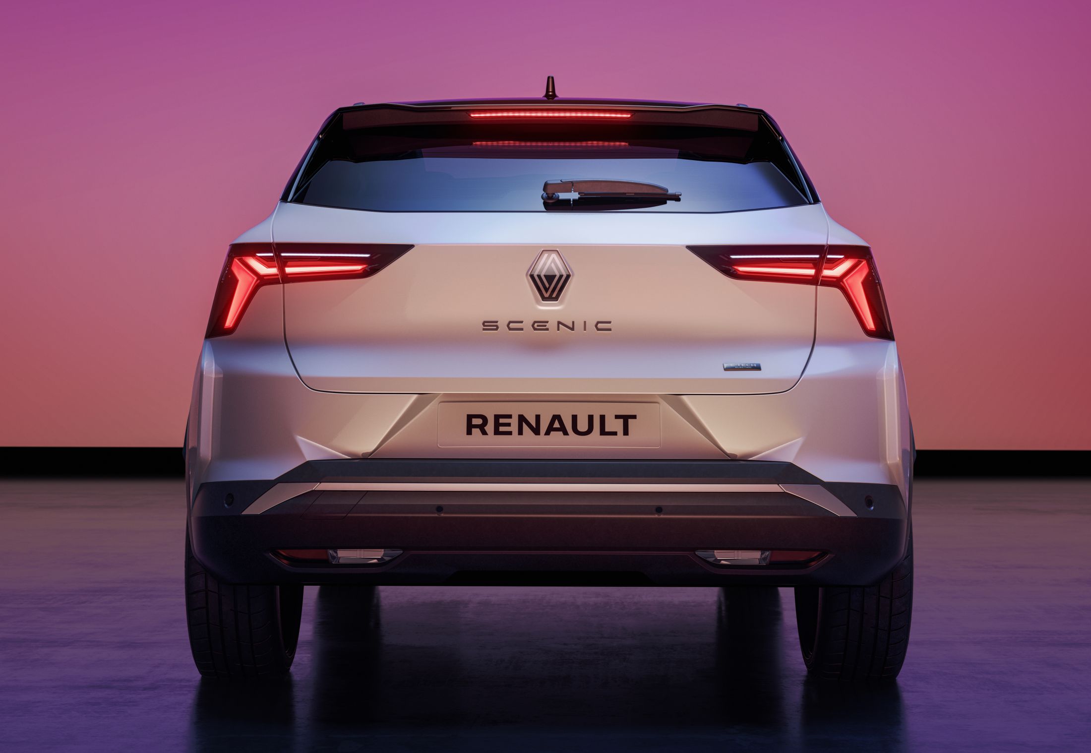 Com 4,47 metros de comprimento, 1,86 metros de largura e 1,57 metros de altura, o design do novo modelo segue de perto a imagem do concept-car Scénic Vision, revelado em 2022. As grandes jantes de 19 e 20 polegadas reforçam o visual arrojado, que é destacado, em primeiro lugar, pela grelha dianteira com representações gráficas do losango do símbolo da marca e pelos grupos óticos mais esguios. O logótipo da marca encontra-se num ângulo vertical na grelha, sobressaindo quando visto de perfil.