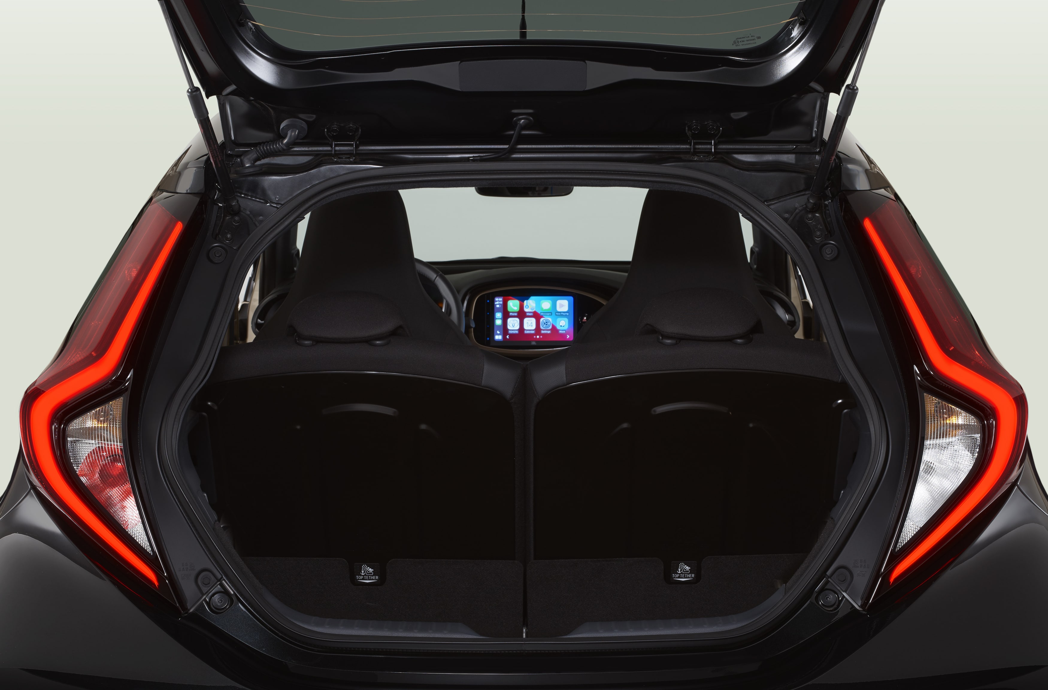 Além disso, o novo Aygo X conta ainda com um sistema de som desenvolvido em parceria entre a Toyota e a JBL com quatro altifalantes, um amplificador de 300 W e um subwoofer de 200 mm de diâmetro situado na bagageira. O interior dispõe ainda de iluminação ambiente e carregador sem fios para smartphones.