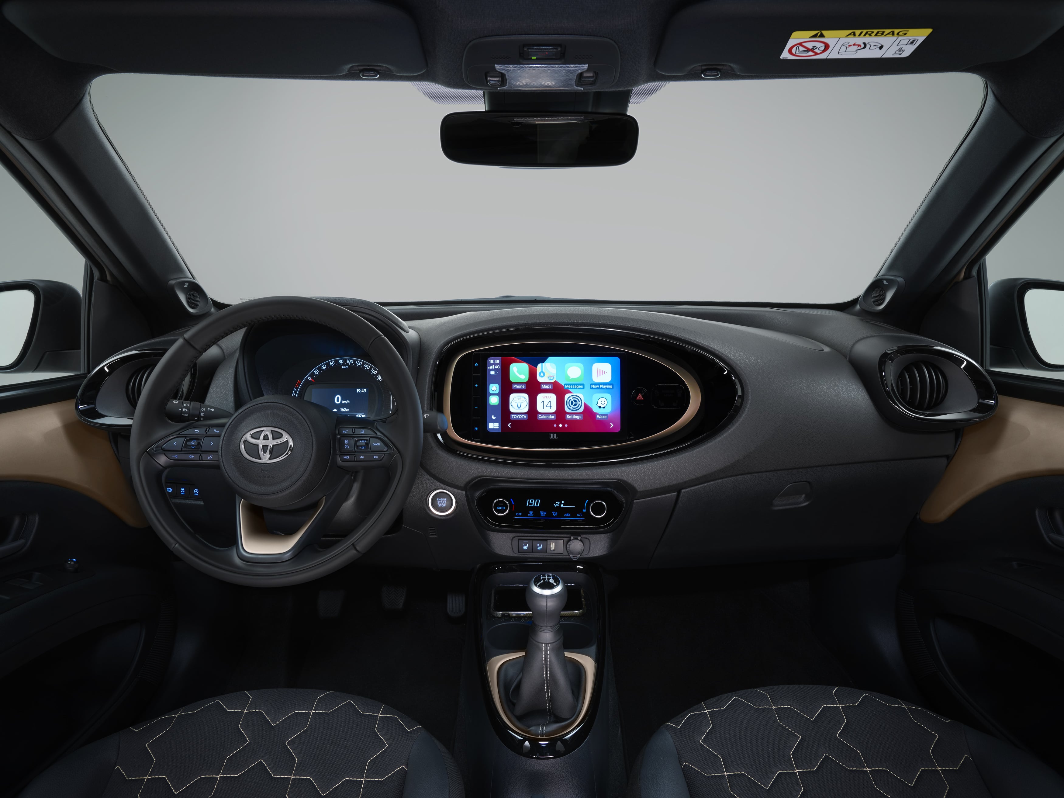 No interior, que também adota formas irreverentes, com elementos circulares em mistura com tecnologia, destaque para o sistema Toyota Smart Connect assente em ecrã tátil de 9.0 polegadas capaz de se ligar sem fios aos smartphones com sistemas Apple CarPlay e Android Auto. O sistema de navegação conectado recebe alertas de trânsito em tempo real nos níveis de equipamento mais elevados. Outros serviços e funcionalidades poderão ser atualizados ou introduzidos a partir de atualizações remotas sem fios.