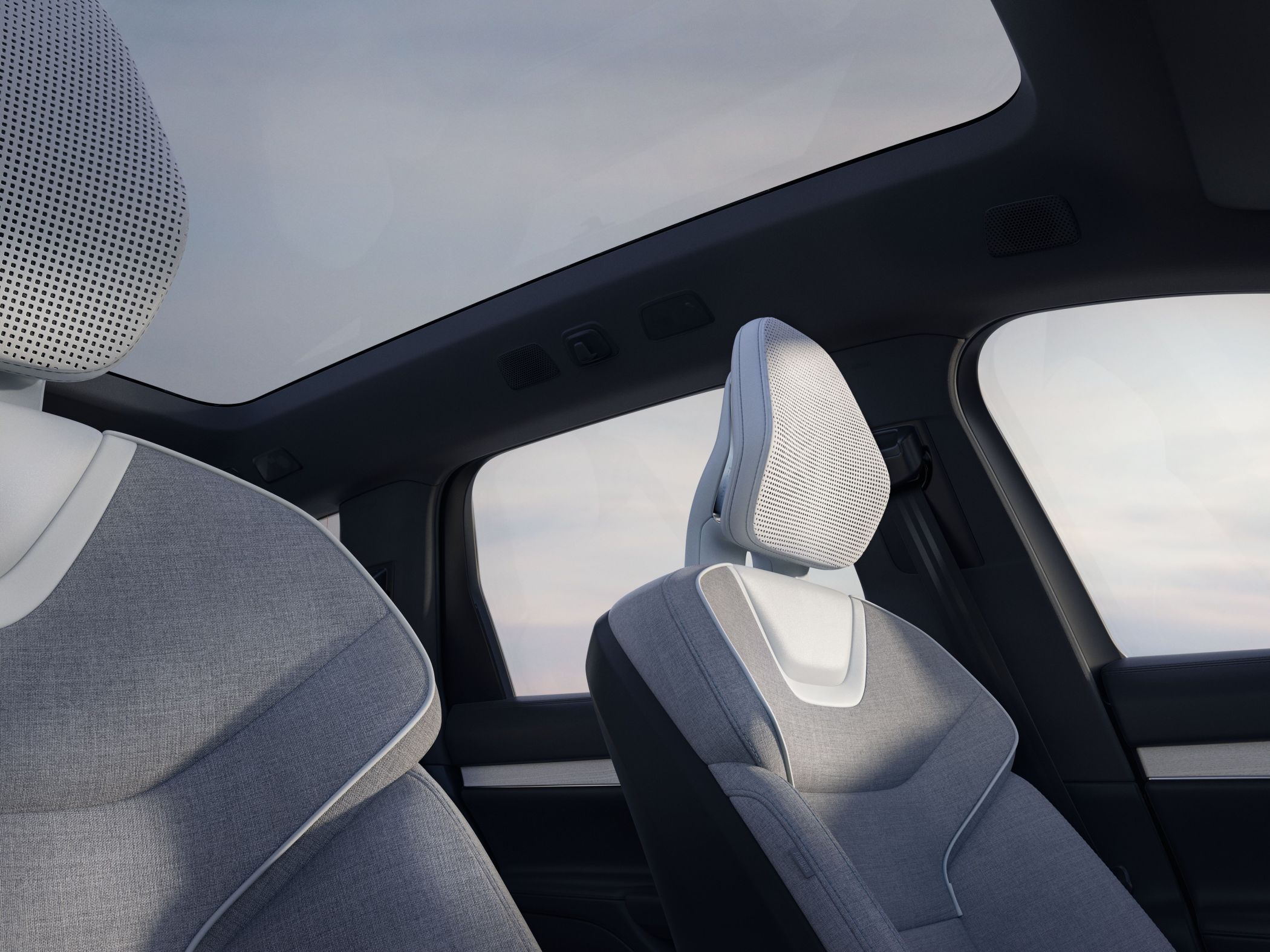 No interior do EX90 encontram-se ainda painéis de madeira com certificação FSC e ampla iluminação. Os bancos têm uma opção de revestimento em mistura de lã, um tecido certificado de acordo com as normas mais rigorosas de sustentabilidade sobre bem-estar animal e questões ambientais e sociais.