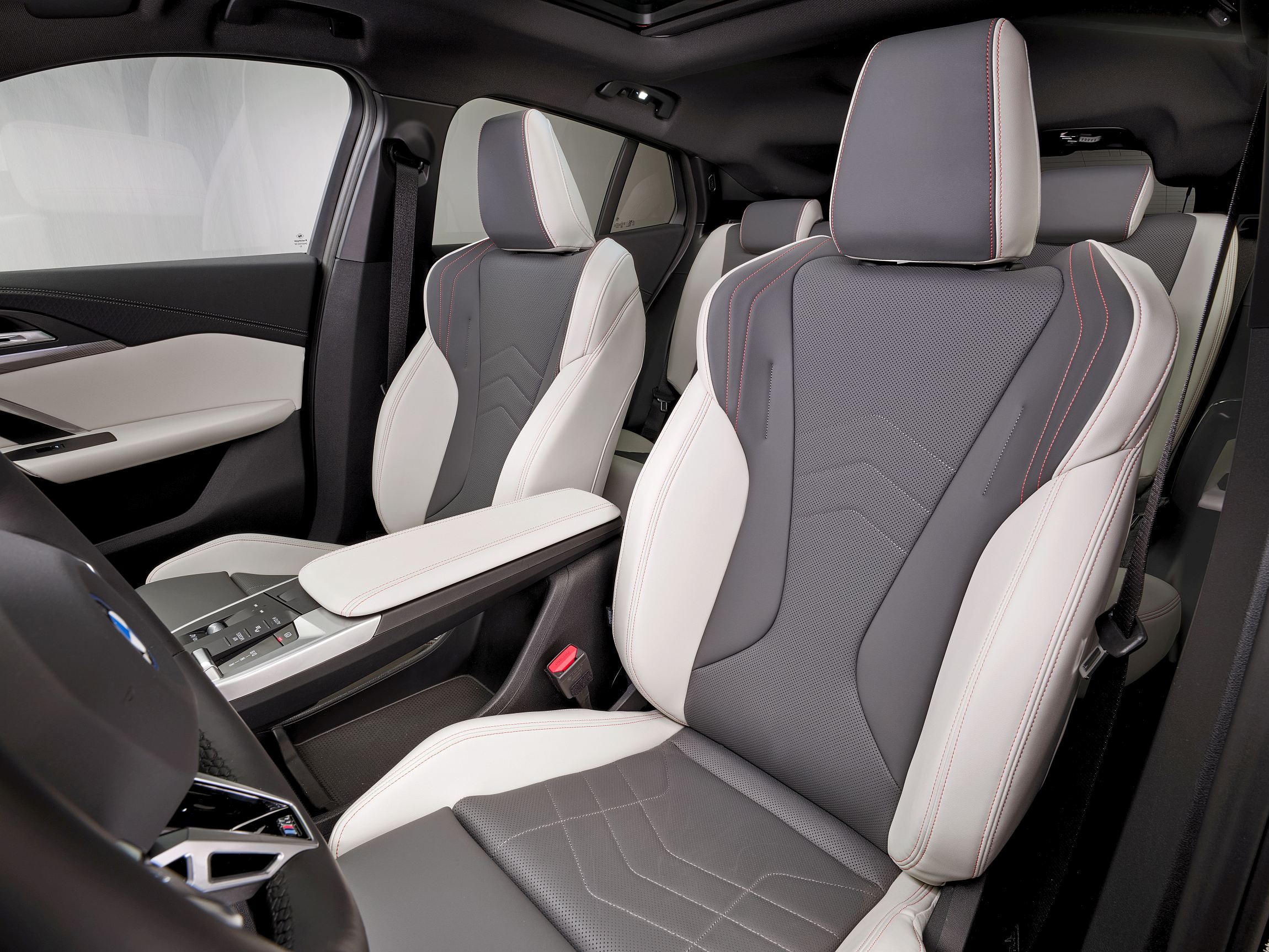 O interior do X2 envereda por um estilo premium com muitos detalhes mais desportivos. O painel de instrumentos e o ecrã central tátil unem-se horizontalmente para a mais recente iteração do BMW Curved Display, com o desenho da consola central a integrar uma bandeja de suporte para os smartphones com iluminação indireta e carregamento wireless.