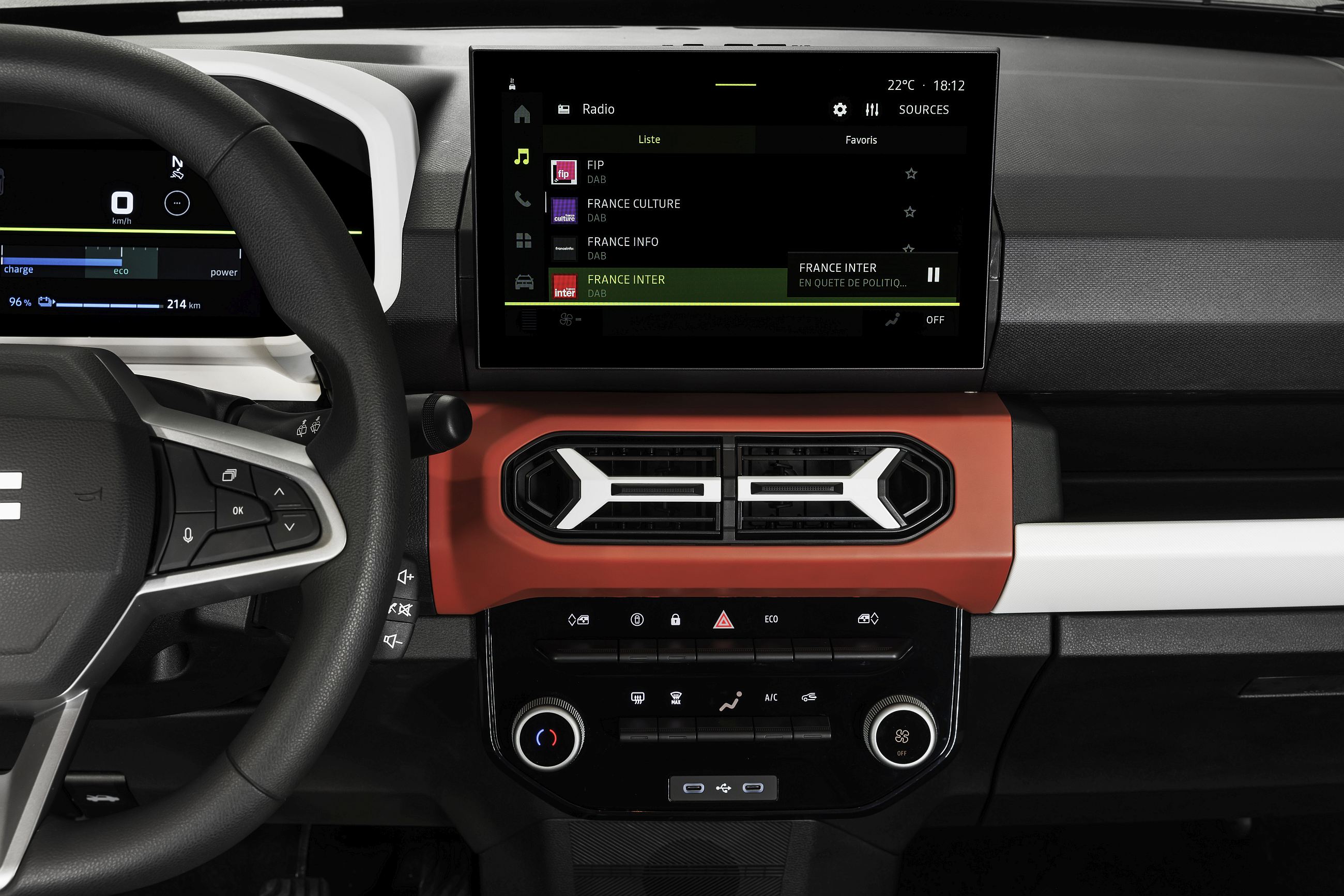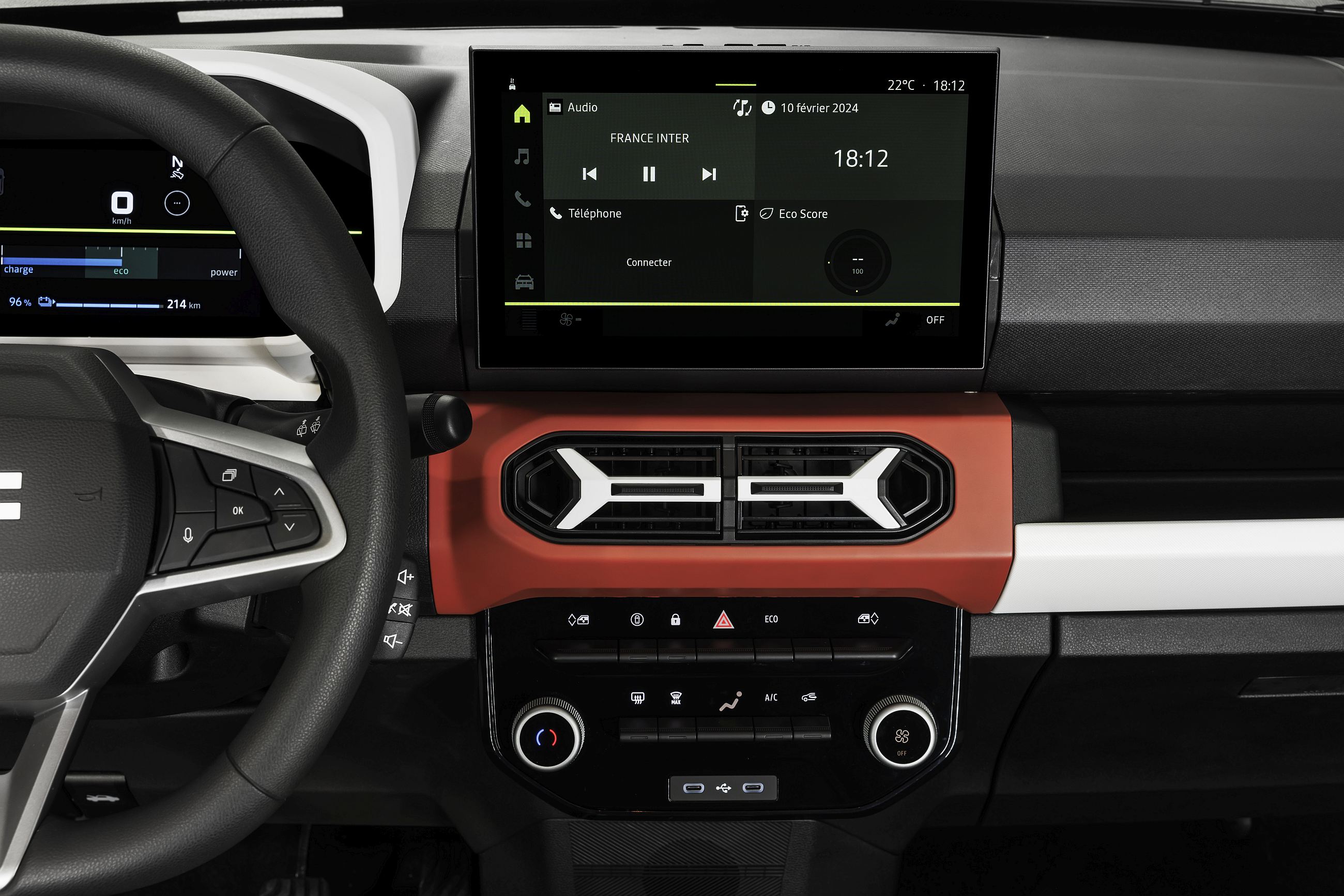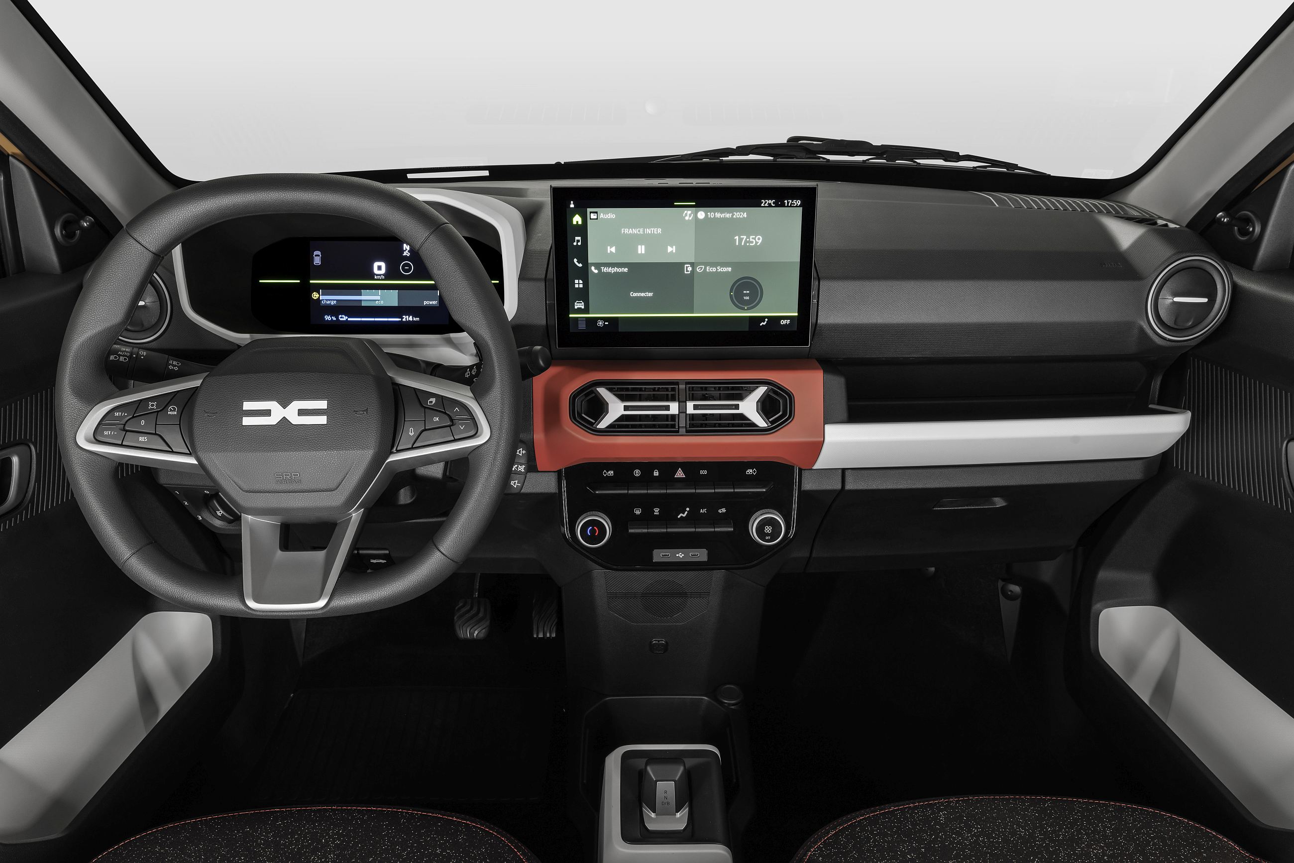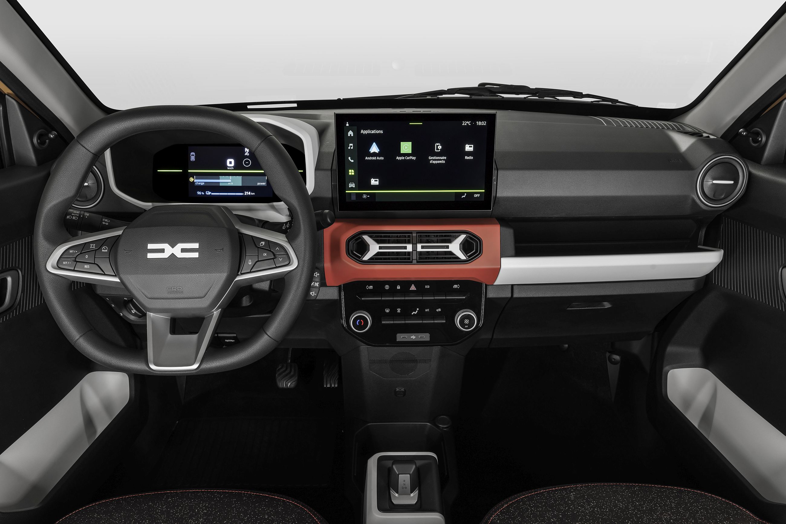 A este respeito, a Dacia irá propor dois sistemas. O Media Control é um sistema pensado para quem considera desnecessário gastar mais em algo que tem à sua ‘mão’, pelo que recorre ao smartphone do utilizador e a uma aplicação integrada da Dacia que deve ser instalada. Isso permite uma comunicação bidirecional de informações entre o dispositivo e o veículo. A aplicação não é nova, mas foi totalmente redesenhada para ser mais intuitiva e completa. Atrás do local onde se pode colocar o smartphone está uma tomada USB-C para carregá-lo. Este sistema estará disponível para as verões de equipamento Essential e Expression, sendo que a Extreme recorre a uma outra versão, a tal com ecrã de 10 polegadas com sistema Media NAV Life, que é três vezes mais potente do que o sistema anterior e partilhado com outros modelos do Grupo Renault.