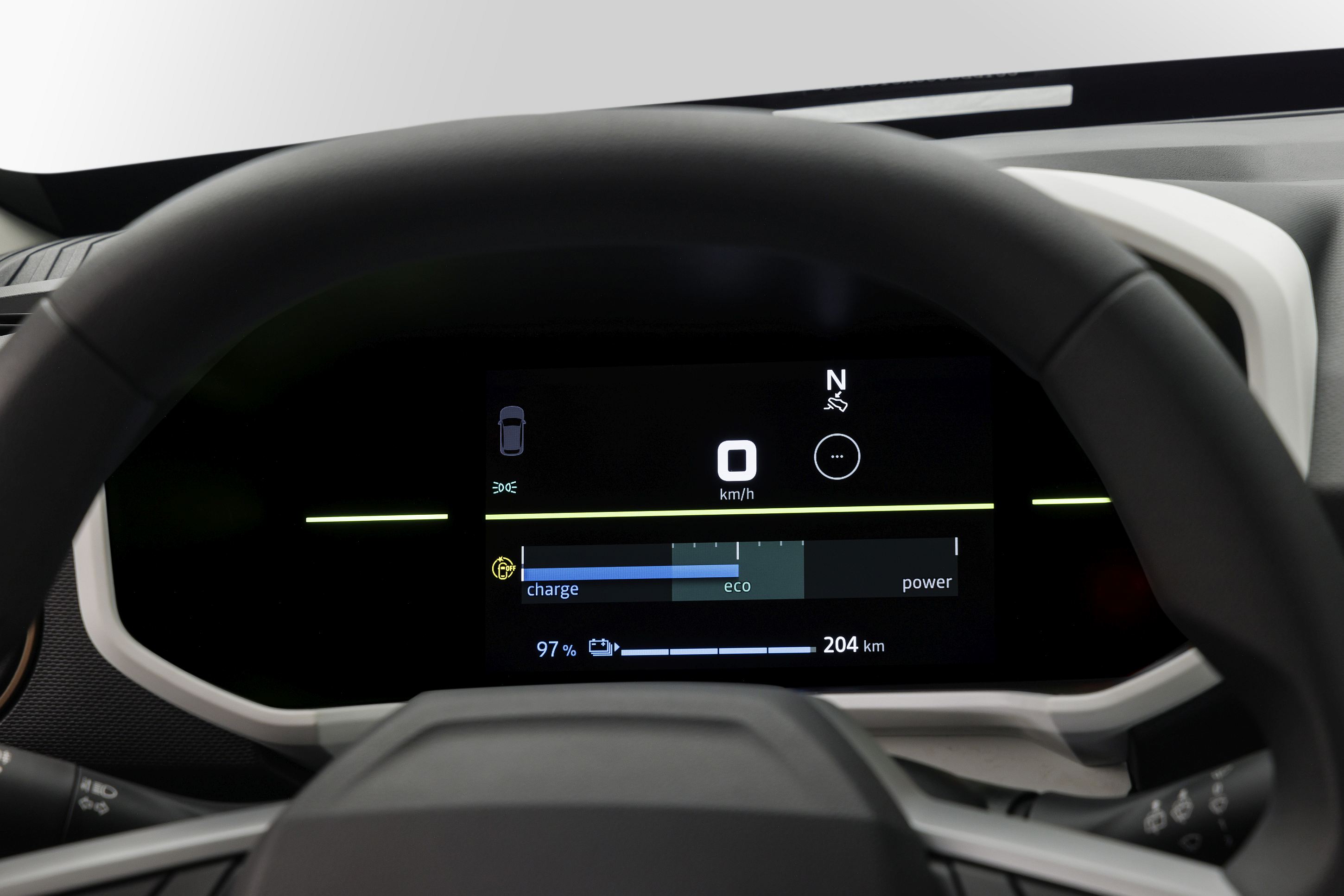 O veículo pode ter ainda carregamento bidirecional, pelo que o Spring pode alimentar outros dispositivos elétricos de baixa potência, graças a um adaptador externo. De série no nível Extreme, carrega a um máximo de 3.3 kW/16 A, com limite mínimo de 15% de capacidade de bateria como salvaguarda, podendo o utilizador alterar esse limite no ecrã tátil para garantir que tem carga suficiente para fazer o trajeto de regresso a casa, por exemplo. Se o condutor assim quiser pode alimentar uma máquina de café para tirar uns ‘expressos’ entre viagens – é uma utilização pouco provável, mas se é possível… porque não?