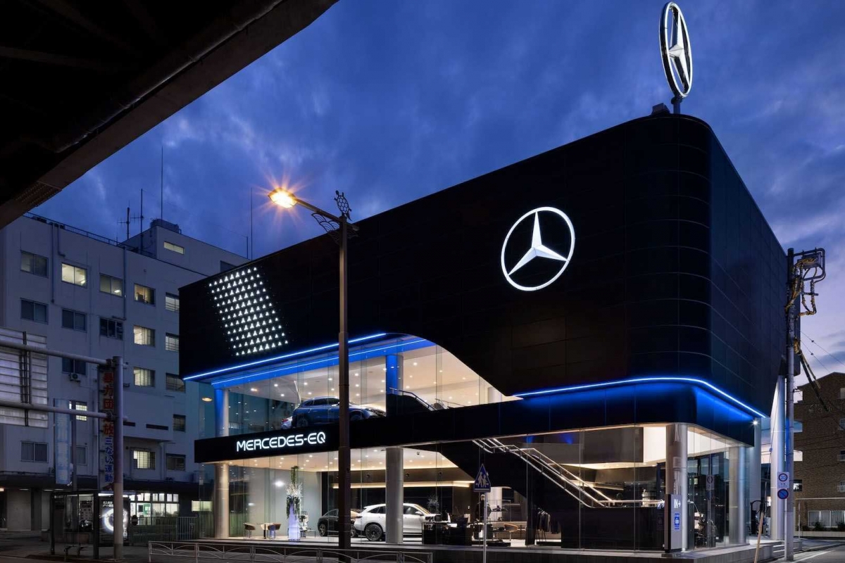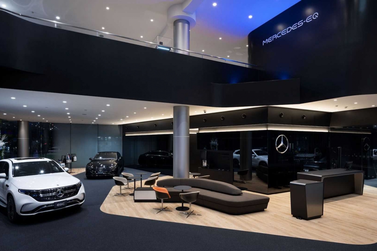 Com 1221 metros quadrados, no showroom Mercedes EQ Yokohama estão expostos cinco modelos Mercedes EQ – que representam a gama atual de modelos EQ, incluindo o topo de gama Mercedes EQS. No entanto, as instalações podem acolher até sete modelos distintos. É possível efetuar test-drives, há um local específico para entrega de veículos e três postos de carregamento. O ponto de venda contempla ainda uma oficina equipada com cinco estações de trabalho.