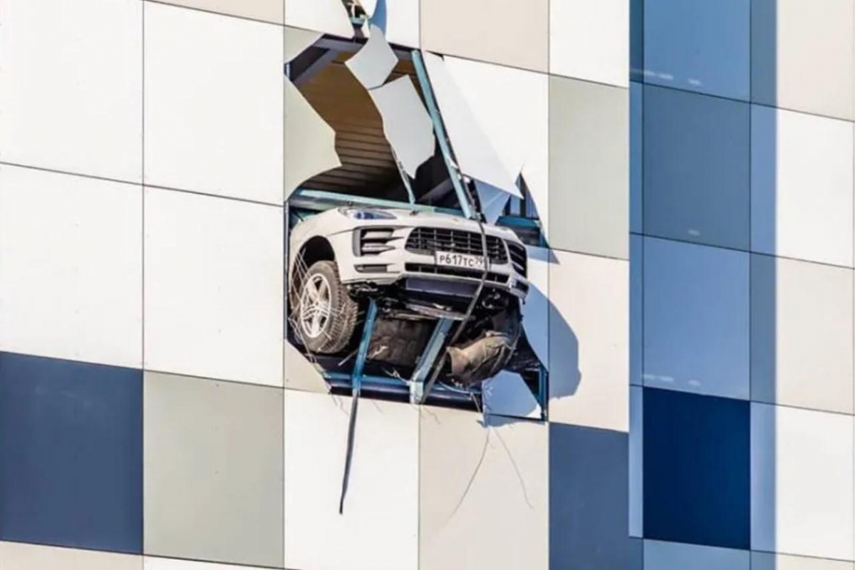 Nos dias que correm, imagens mais insólitas a circular nas redes sociais pedem observação cada vez mais atenta, uma vez que são muitas vezes fabricadas digitalmente. Mas não será o caso das fotografias e vídeos deste Porsche Macan, que ficou efetivamente pendurado num prédio, a uma altura equivalente a um quinto andar.