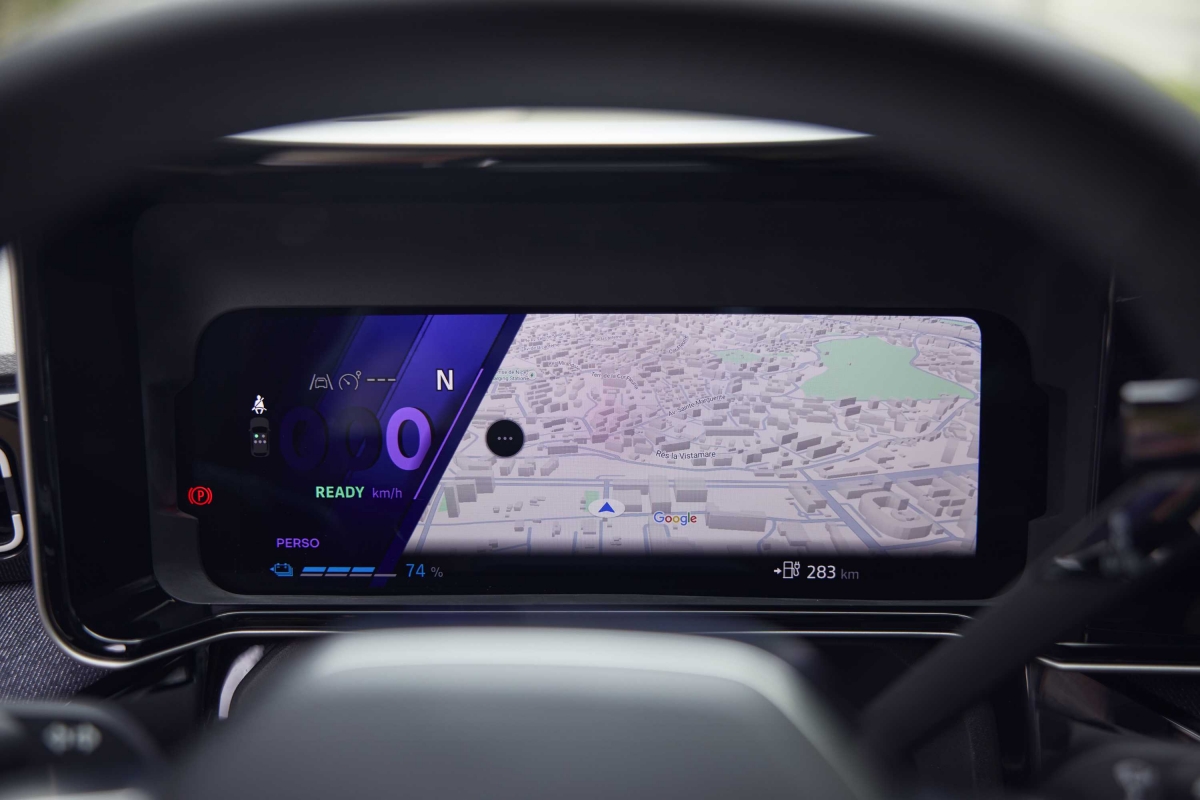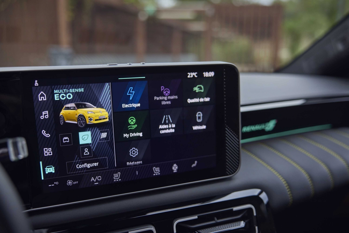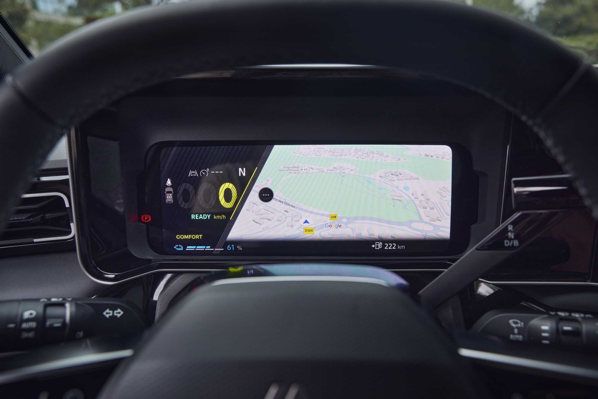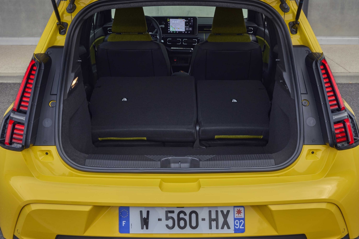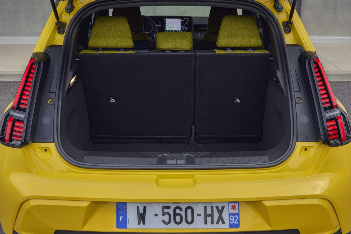 O habitáculo do Renault 5 é espaçoso para um automóvel compacto, sobretudo nos lugares da frente com muitas opções de arrumação. Os bancos são confortáveis, mas a fila traseira é apertada mesmo para adultos de estatura média, o que é comum no segmento. Já a bagageira destaca-se ao disponibilizar 326 litros de capacidade. A tecnologia a bordo inclui um sistema de infoentretenimento intuitivo com Android Automotive e navegação com Google Maps, um painel de instrumentos para o condutor e um ecrã multimédia, ambos com 10 polegadas e opções de conetividade com suporte para Android Auto e Apple Car Play sem fios. De série temos a companhia virtual de um avatar que responde pelo nome de “Reno”, potenciado com ChatGPT que pode ser utilizado para nos entreter com charadas, obter direções para um posto de carregamento ou sugestões para otimizar a autonomia. Na prática tivemos alguma dificuldade em convocar o “Reno”, talvez por causa do nosso sotaque. Conta ainda com os sistemas de segurança ADAS comuns que já são padrão na maioria dos carros atuais.
