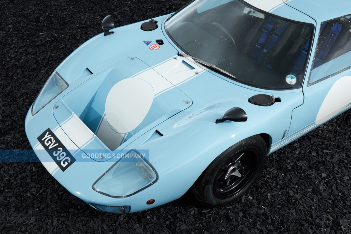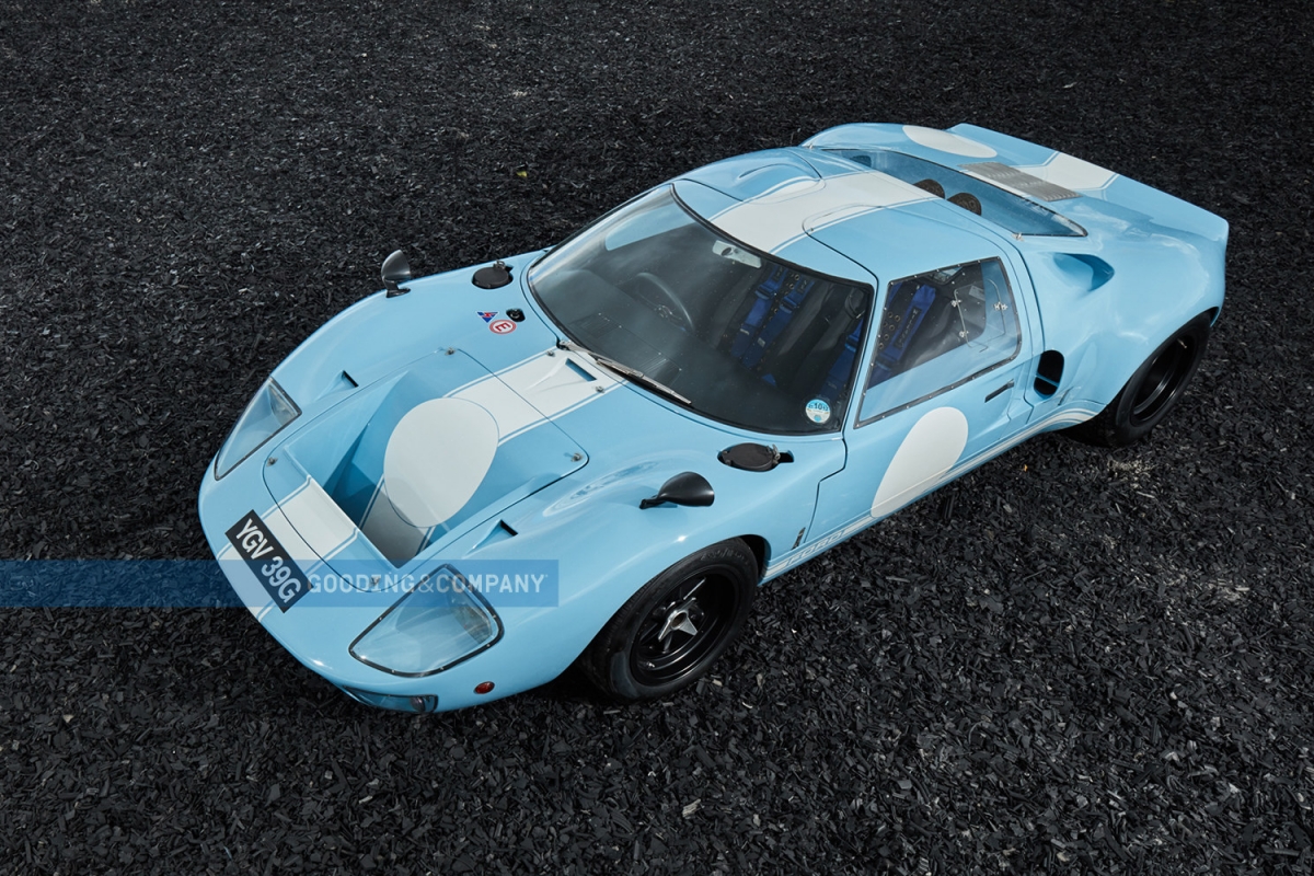 A leiloeira Gooding & Company vai levar a hasta no próximo mês de junho um exemplar muito especial do Ford GT40, com o chassis P/1085, o último de apenas 105 fabricados entre 1964 e 1969.