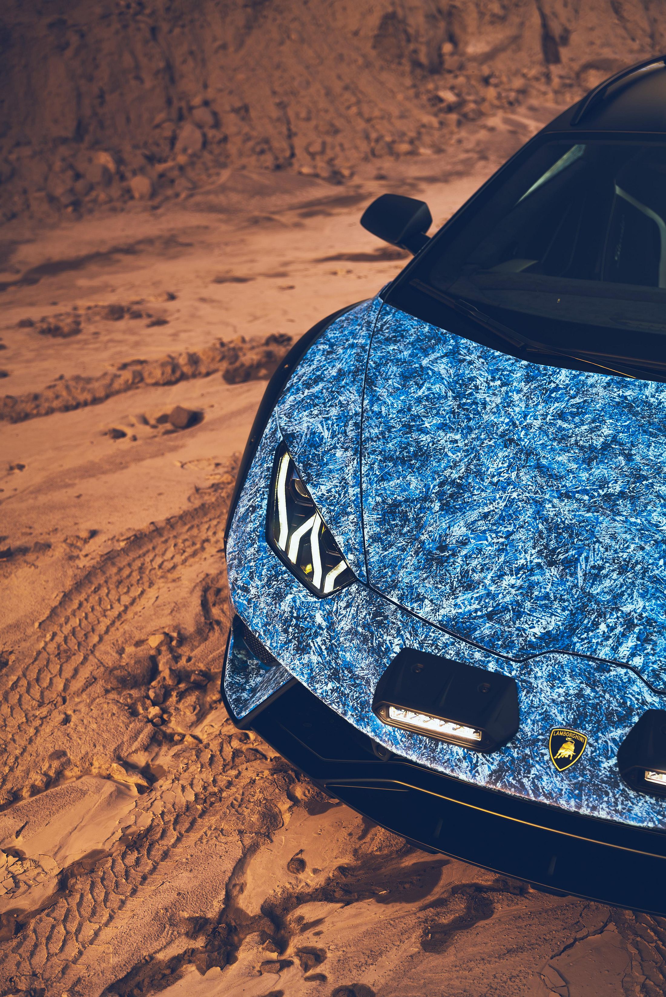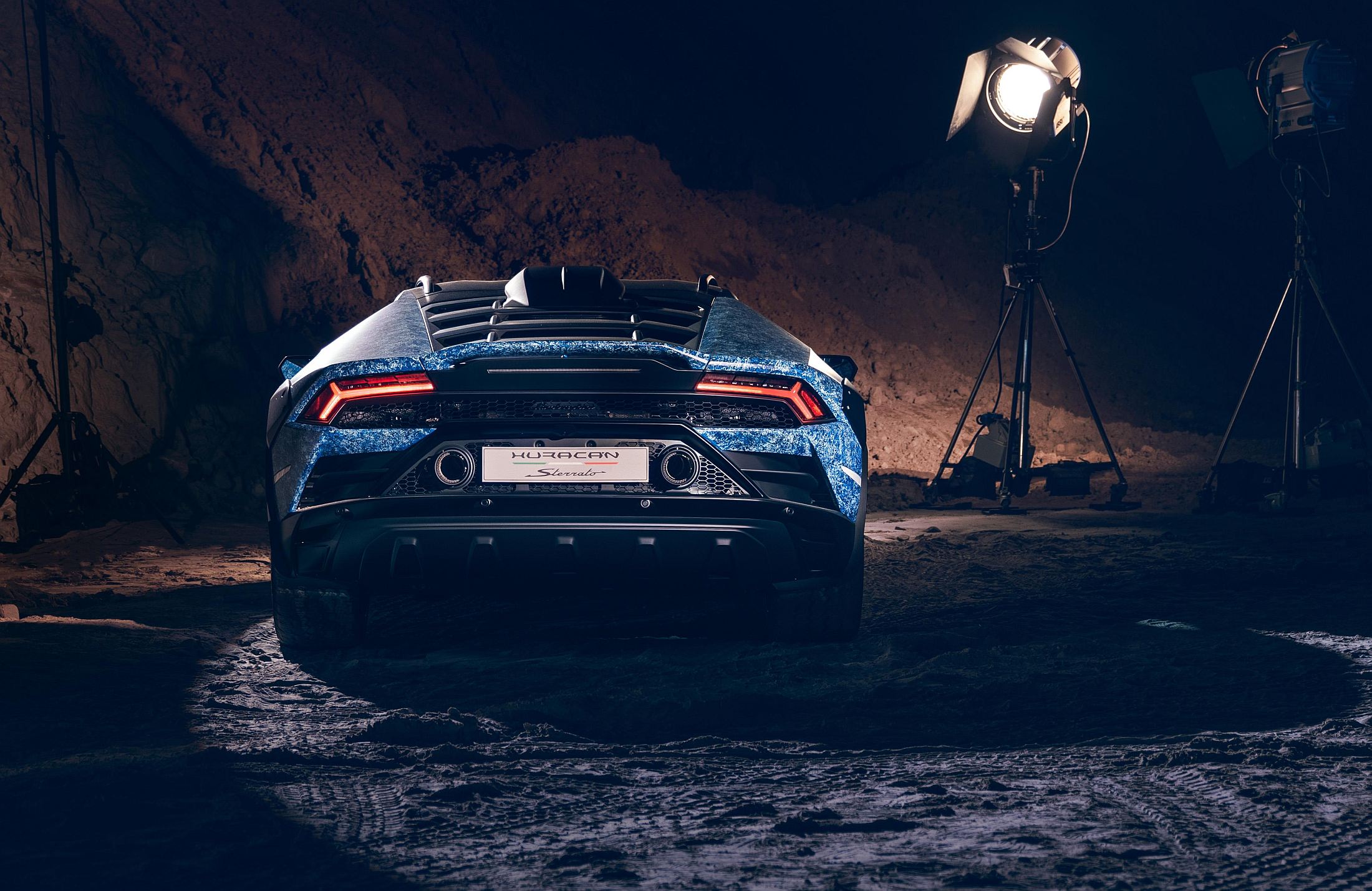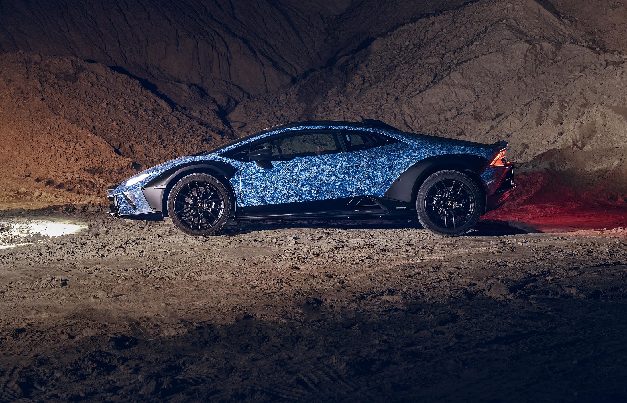 O Huracán Sterrato ‘Opera Única’ inspira-se, pois, nas estradas da Costa Esmeralda, sobressaindo pelo seu exterior pintado à mão, com três cores utilizadas para criar um efeito cristal, similar ao de um líquido congelado: ‘Blu Amnis’ é usado como cor primária, à qual é depois aplicada à mão uma segunda camada de tinta ‘Blu Grifo’ e uma terceira, ‘Blu Fedra’, num processo que leva mais de 370 horas.