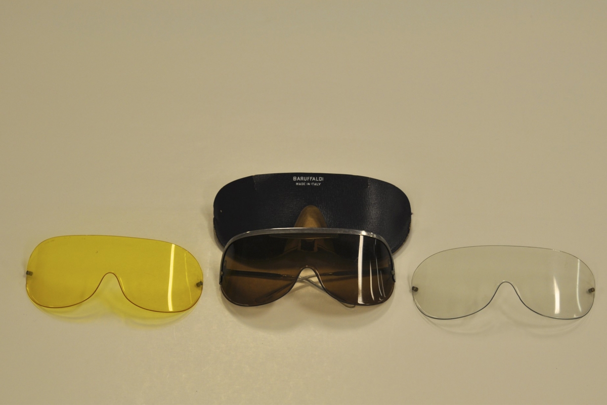 A Mecum Auctions vai leiloar uns óculos de sol da famosa marca italiana Baruffaldi, especializada desde 1937 na produção de artigos para a aviação, esqui e desportos motorizados, e que forneceu grandes pilotos da história, como Nuvolari ou Ascari. A empresa faliu no final dos anos 90, mas regressou depois ao ativo pelas mãos de um investidor que recuperou o nome, os desenhos e o processo de fabrico.
