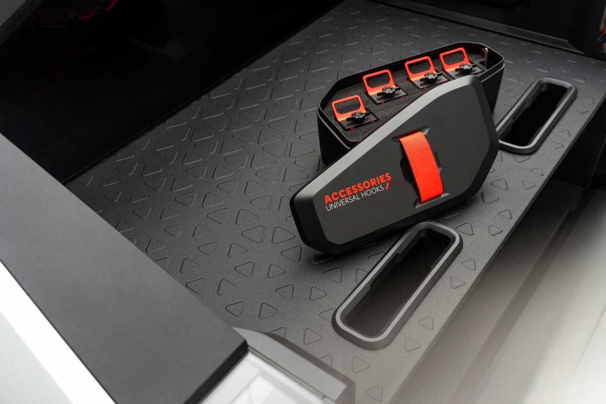 O número de elementos utilizados no painel de instrumentos e no tablier foram também reduzidos de 75 para 34. O melhor sistema de infoentretenimento está já nos nossos smartphones, e no Oli o condutor coloca o seu numa doca especifica para ter funções como a navegação, ou música projetadas na parte inferior do para-brisas. Juntamente com substituição total do sistema de som por colunas Bluetooth removíveis permitiu poupar 250 kg.