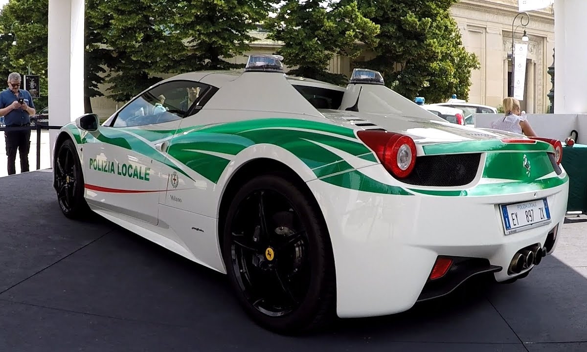 Apreendido a um elemento da mafia italiana e transformado em carro de polícia, este Ferrari 458 Spider foi utilizado pelas autoridades em Milão. Mas desde 2018 que participa apenas em campanhas de sensibilização e segurança.