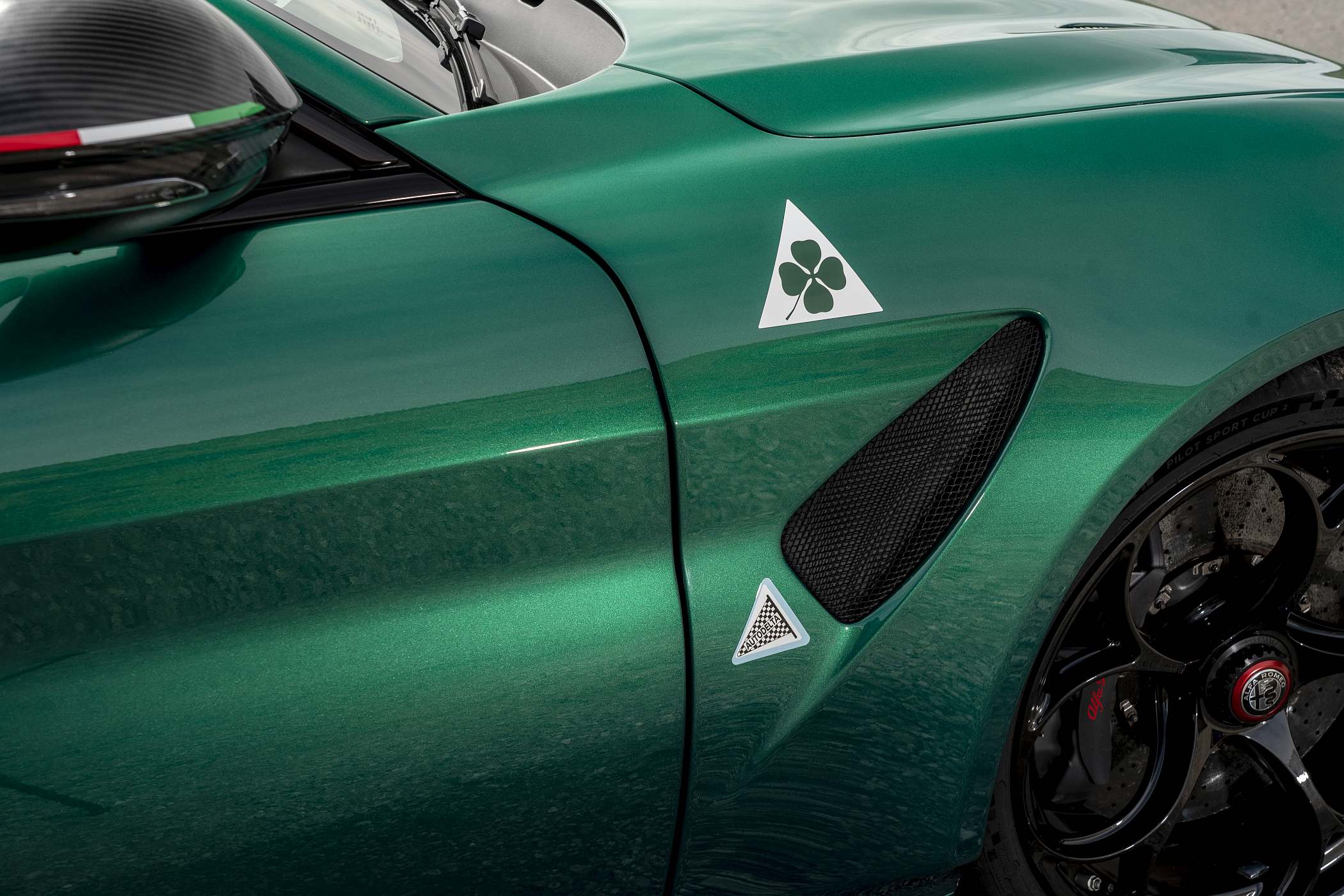 Os novos conteúdos incluem jantes de 20” com porca de aperto central (associadas a pneus Michelin Pilot Sport Cup 2) e sistema de escape central Akrapovic de titânio. Adicionalmente, a Alfa Romeo preparou uma ampla gama de opções de personalização como parte de uma oferta que lembra o espírito do Giulia GTA de 1965: das cores de carroçaria criadas pelos designers do Centro Stile Alfa Romeo às cores de inúmeros pormenores, como as pinças de travão e, no interior, à jaula de segurança ‘roll bar’, os cintos de segurança Sabelt de seis pontos e as costuras. As portas traseiras são desprovidas de painéis e a abertura das portas dianteiras é feita por meio de correia, em vez de puxadores, na mesma cor dos cintos de segurança.