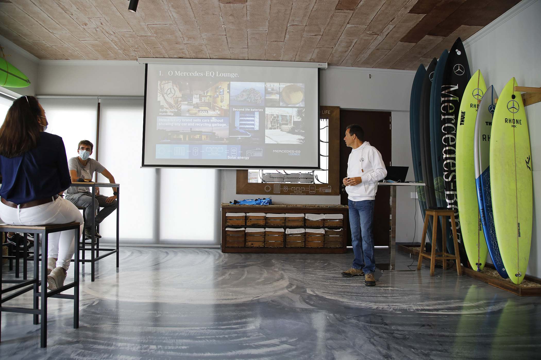 Destaque para a paragem estratégica na Nazaré. Na cidade piscatória, os três EQA foram recarregados no Mercedes EQ Lounge com energia 100% sustentável, proveniente de antigas baterias de Classe B elétricos alimentadas, por sua vez, pelos painéis fotovoltaicos do edifício. Aqui, no ponto central das iniciativas sustentáveis da Mercedes-EQ em Portugal, a marca alemã aproveitou para divulgar os seus projetos e iniciativas rumo a um futuro mais sustentável.