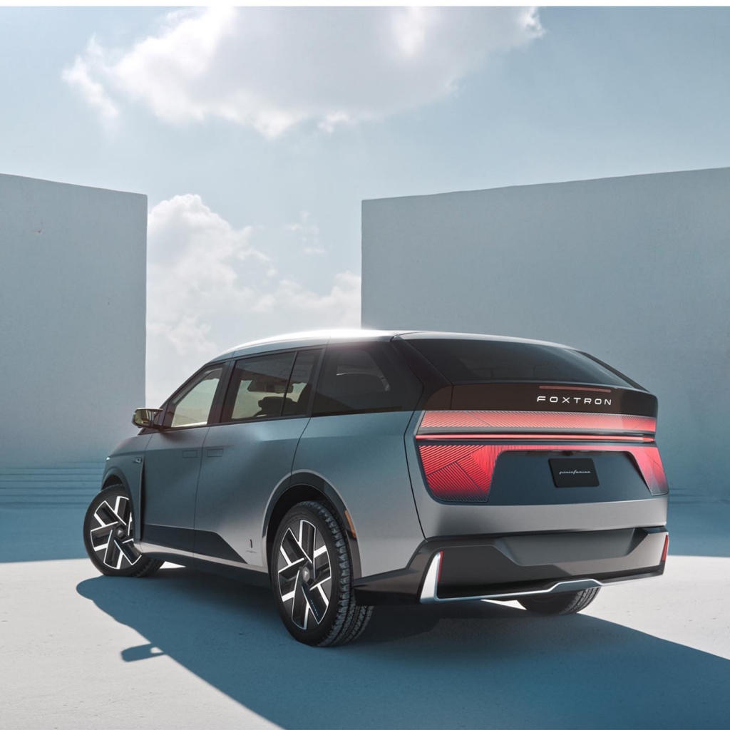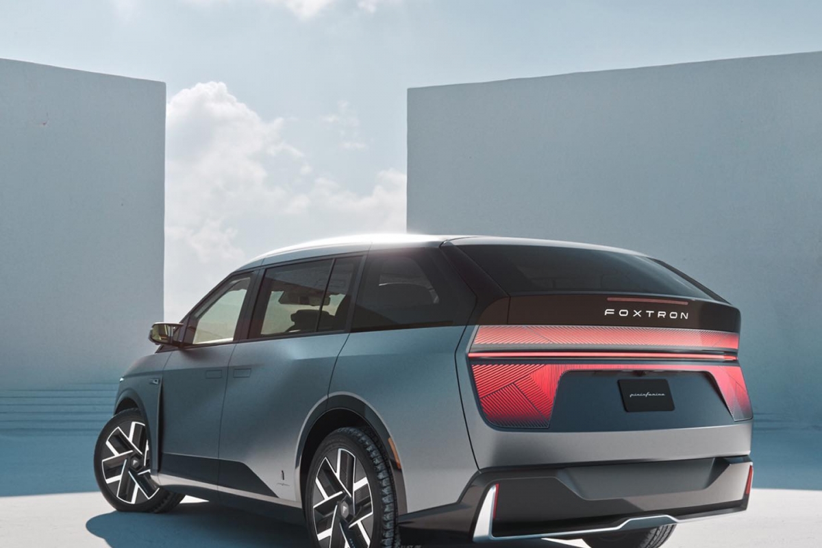 A influência de Pininfarina é visível no equilíbrio do design entre o carácter prático e a beleza. Todas as linhas são propositadas e as proporções comunicam uma compreensão do que pode ser a mobilidade do futuro – elegante, espaçosa e minimalista. Na traseira, o Foxconn Model D continua a sua linguagem de design digital. Uma barra de luz LED horizontal percorre toda a largura do veículo, tal como na frente, ligando ambos os lados e criando uma assinatura visual que é reconhecível à distância. A traseira também apresenta uma forma angular única, com arestas vivas que cortam a carroçaria, dando ao Modelo D uma aparência aerodinâmica mas esculpida.
