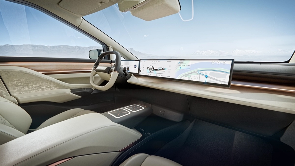 O volante é compacto e futurista, com comandos tácteis integrados que simplificam ainda mais a experiência de condução. A consola central flutuante entre os bancos dianteiros foi concebida de forma inteligente, privilegiando o sentido prático e a tecnologia avançada. Com os seus painéis tácteis iluminados e um design elegante, aumenta a sensação de conduzir um veículo que está à frente do seu tempo.