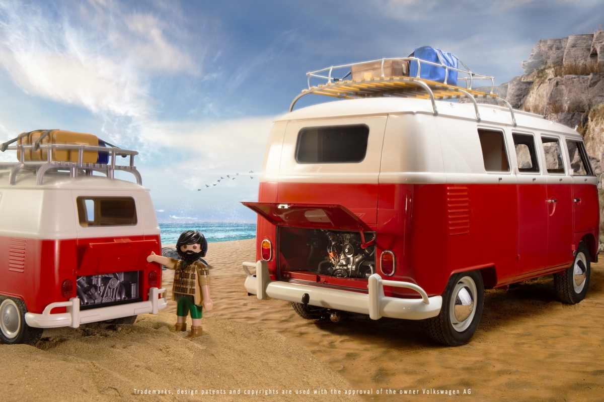 O modelo da Playmobil é à escala 1:18, medindo 25 cm de comprimento, 11 cm de largura e 13 cm de altura, e com bancos, armários e porta-copos funcionais, além de uma pequena réplica muito fiel do motor de quatro cilindros boxer arrefecido a ar na secção posterior.
