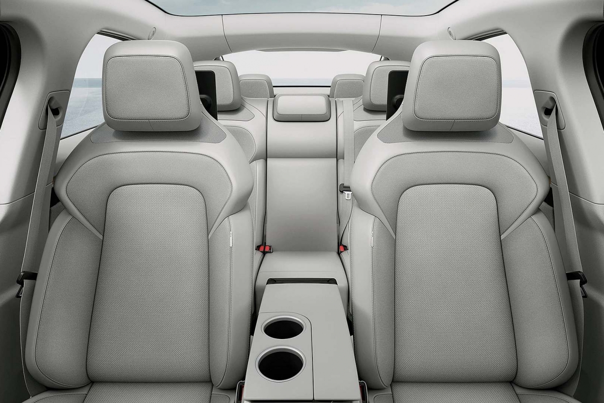 Os dois nos extremos apresentam as imagens captadas pelas câmaras exteriores que substituem os espelhos retrovisores e os três centrais destinam-se à instrumentação, sistema multimédia e entretenimento do passageiro dianteiro.