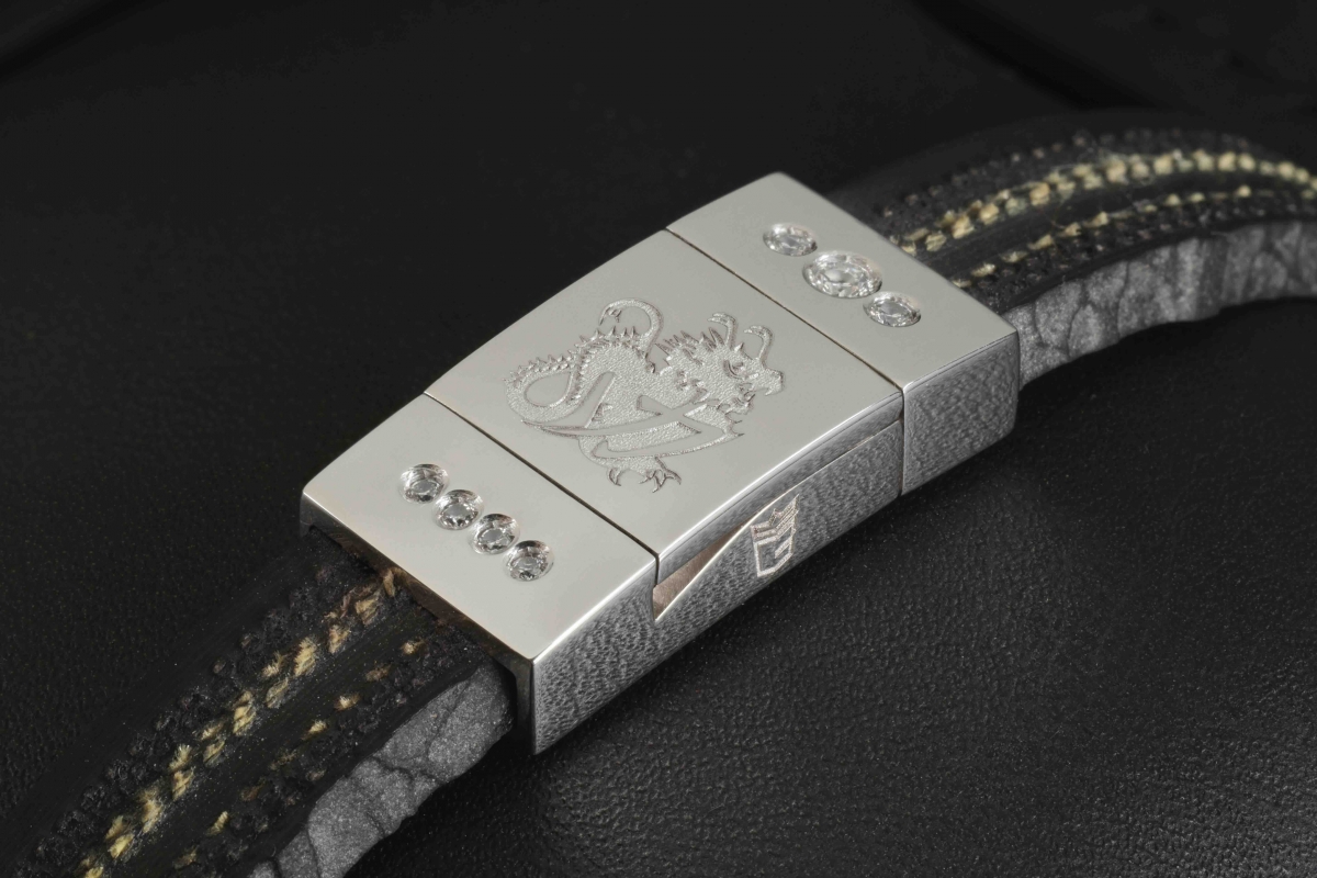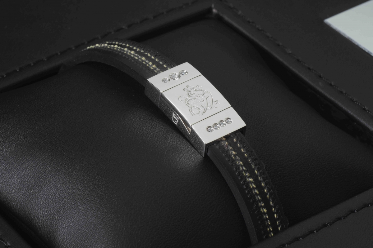 Trata-se do pneu slick traseiro esquerdo que equipou o monolugar do alemão sete vezes campeão do mundo nessa histórica corrida, uma raridade assinada pelo próprio, e que deu origem a um total de 91 pulseiras personalizadas com aplicações em platina e sete diamantes.