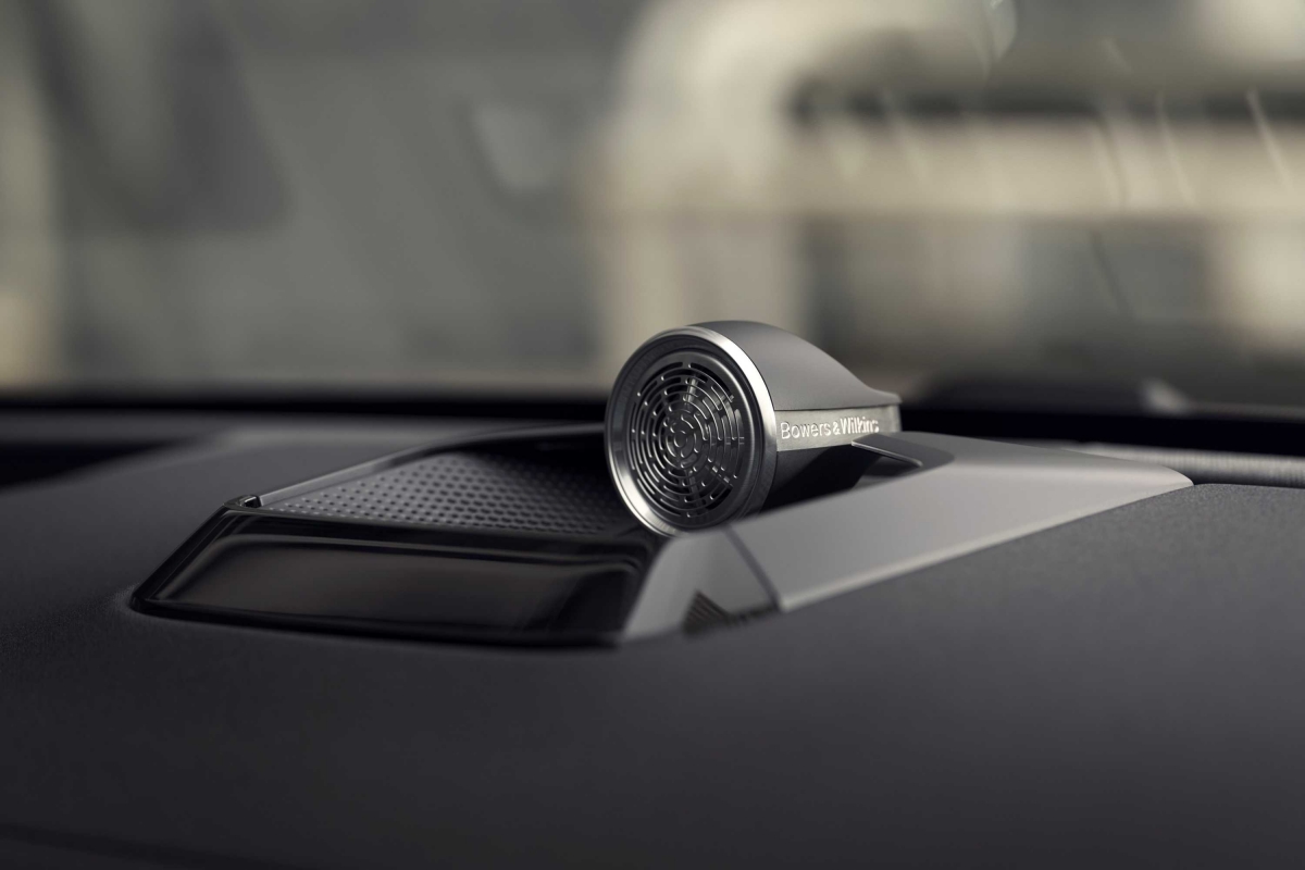 A complementar a função de cancelamento de ruído está o sistema de áudio de alta fidelidade, da Bowers & Wilkins com 25 colunas, incluindo a característica unidade de altas frequências (teeter), colocado no centro do tablier. O sistema oferece um som nítido e claro, com graves ricos e agudos detalhados, proporcionando uma experiência semelhante a um concerto para o condutor e os passageiros. As colunas estão cuidadosamente posicionadas para criar um palco sonoro equilibrado, assegurando que todos os lugares do automóvel beneficiam do áudio de alta qualidade.