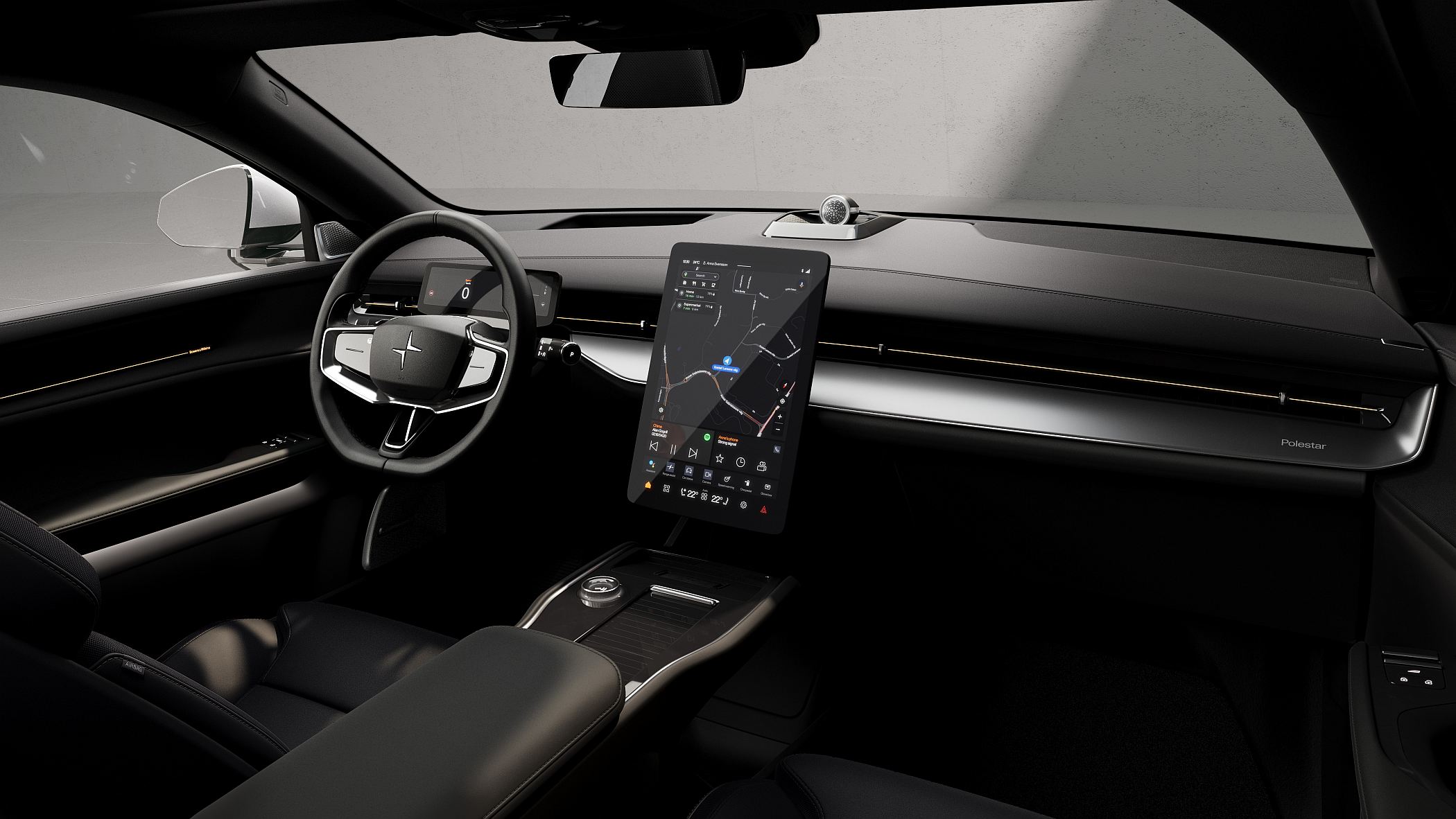 No interior, duas câmaras para monitorizar o condutor fazem a estreia da tecnologia de rastreio ocular da Smart Eye num modelo Polestar, para proporcionar uma condução mais segura. Estas câmaras são capazes de monitorizar os olhos do condutor e podem enviar mensagens de aviso, sons ou ativar mesmo uma função de paragem de emergência ao detetar a presença de um condutor distraído ou sonolento.