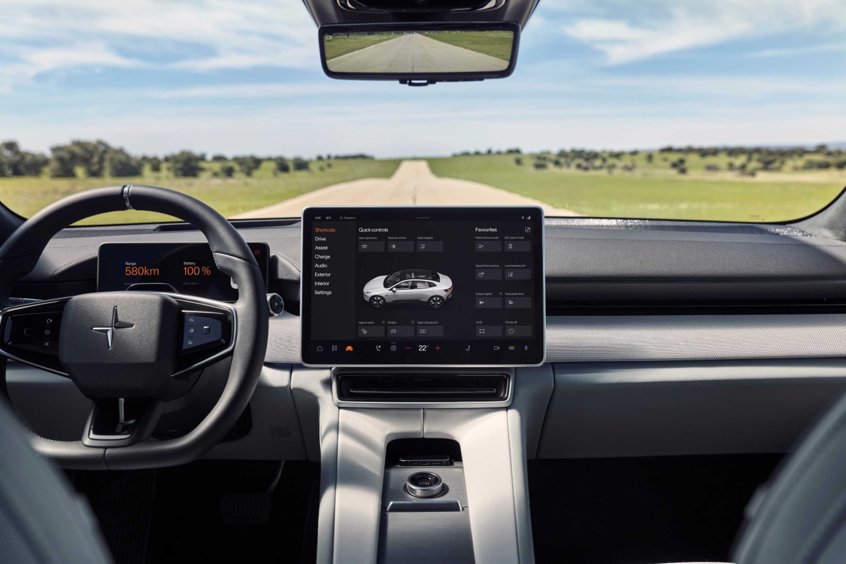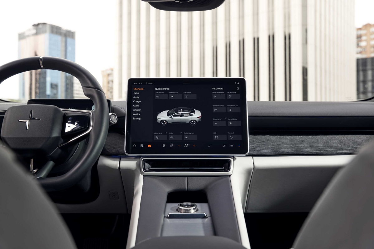 O automóvel está equipado com um ecrã de 15,4 polegadas que está montado na horizontal e é o primeiro da marca com o sistema operativo Android Automotive. Além do ecrã, o Polestar 4 tem um ecrã com as principais informações para a condução atrás do volante e ainda um head-up display.
