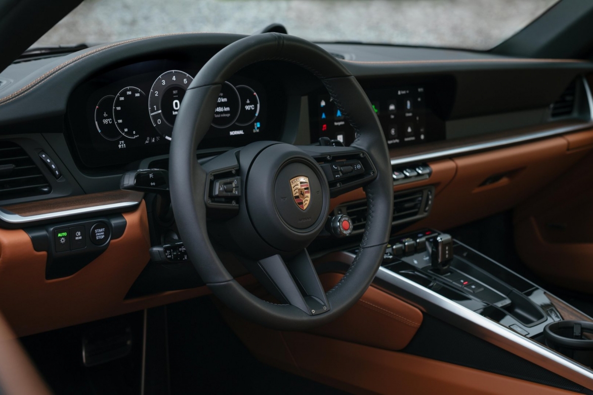 A Porsche disponibiliza ainda uma opção com uma utilização ainda mais extensiva da Pele, o que reveste grandes áreas do interior – a tampa do porta-luvas, os painéis laterais e a base dos bancos. Mediante pedido, a Porsche acrescenta pespontos em cor de contraste, em Crayon. O Carrera S beneficia de todo o equipamento de série atualizado da restante gama. Este inclui, por exemplo, os faróis em LED Matrix e um carregador de smartphone sem fios. As opções incluem um sistema de elevação do eixo dianteiro, os inovadores faróis em LED HD-Matrix e o Pacote Sport Chrono, incluindo a app Porsche Track Precision, ideal para track days.