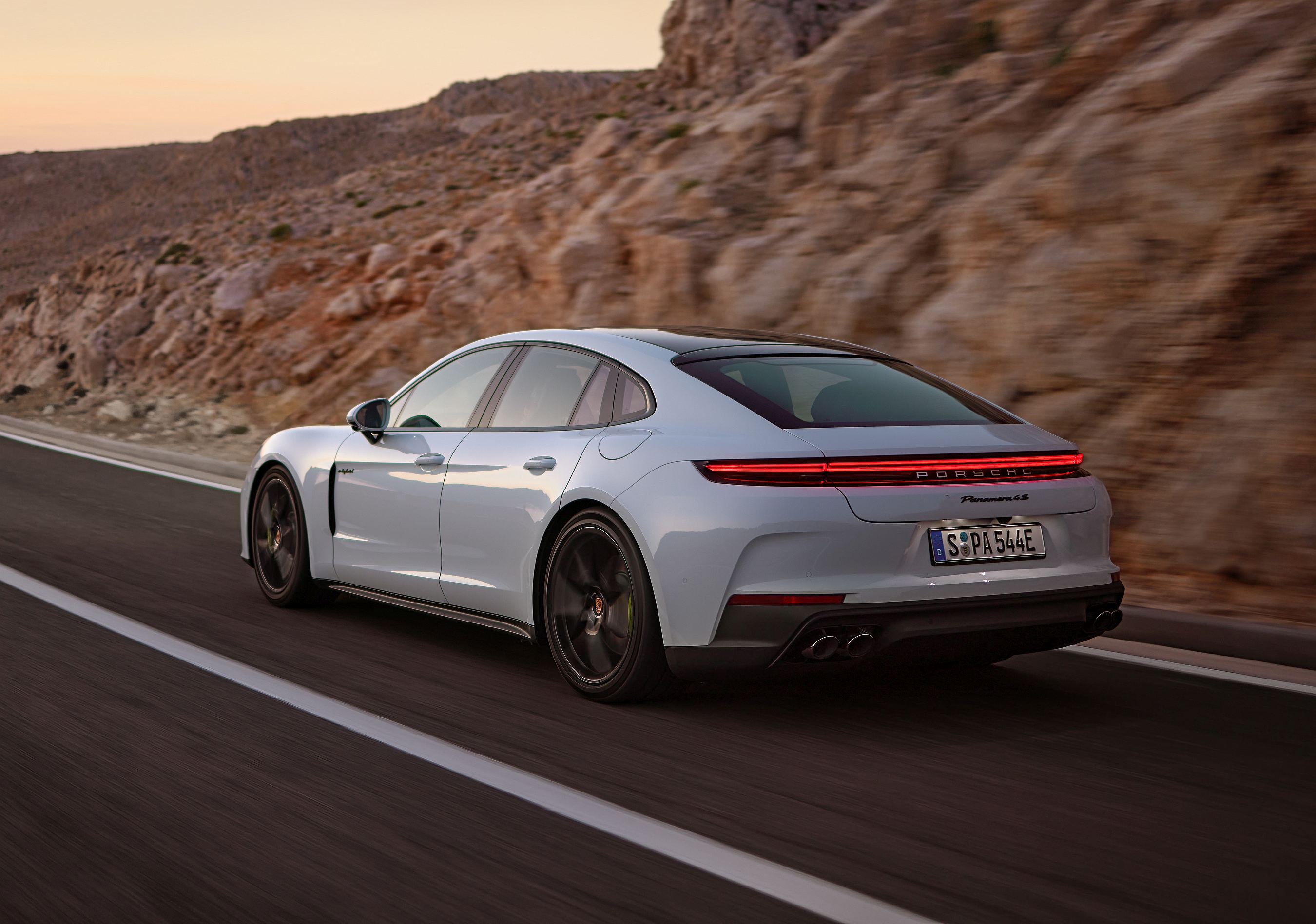 Todas as variantes do novo Panamera dispõem de faróis em LED Matrix de série e de uma entrada de ar na horizontal adicional na dianteira. Na traseira, a berlina desportiva destaca-se pelas luzes com um design contínuo e o óculo traseiro sem moldura. Os frisos das janelas em cor prata realçam a linha lateral do veículo.