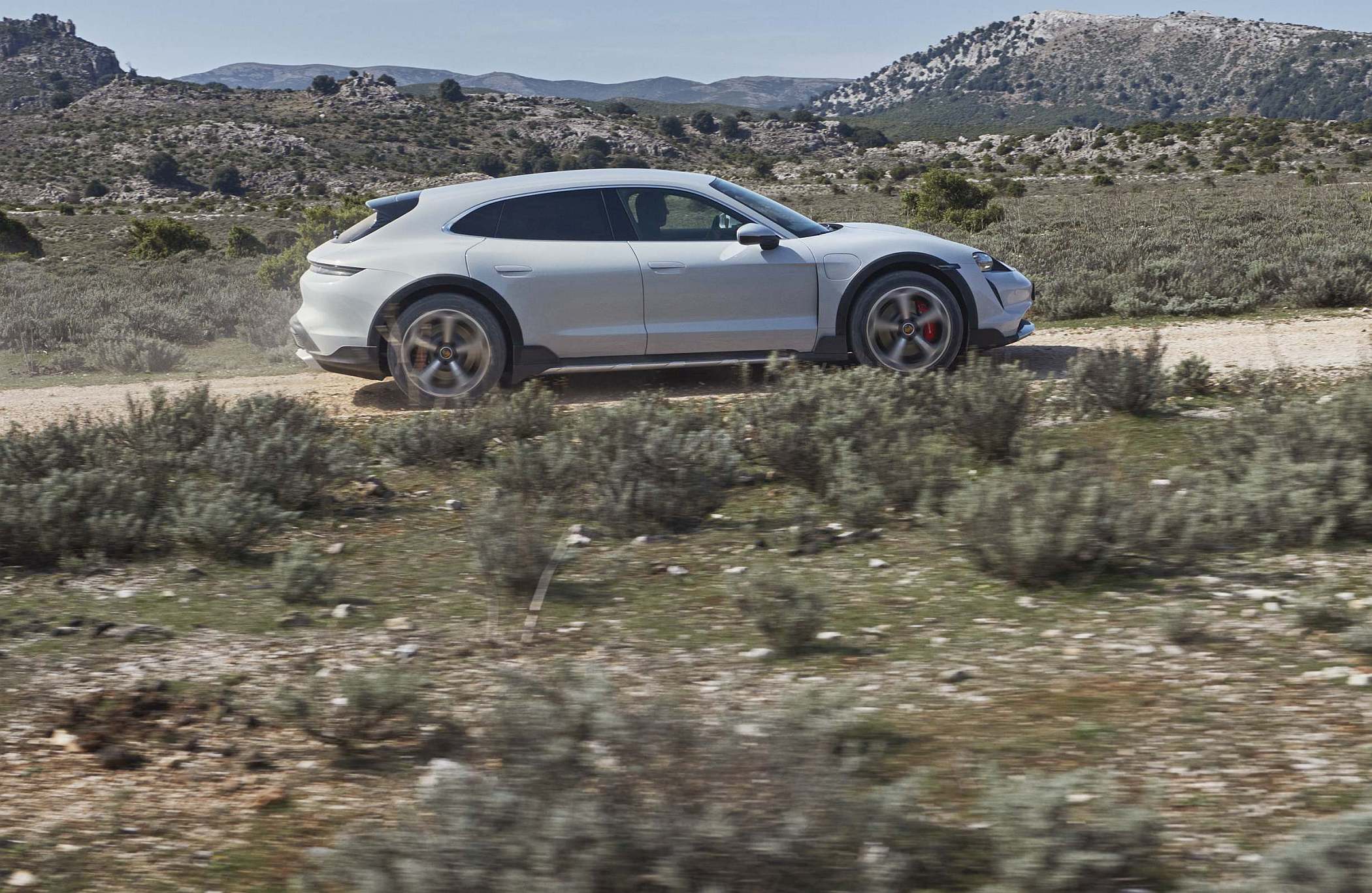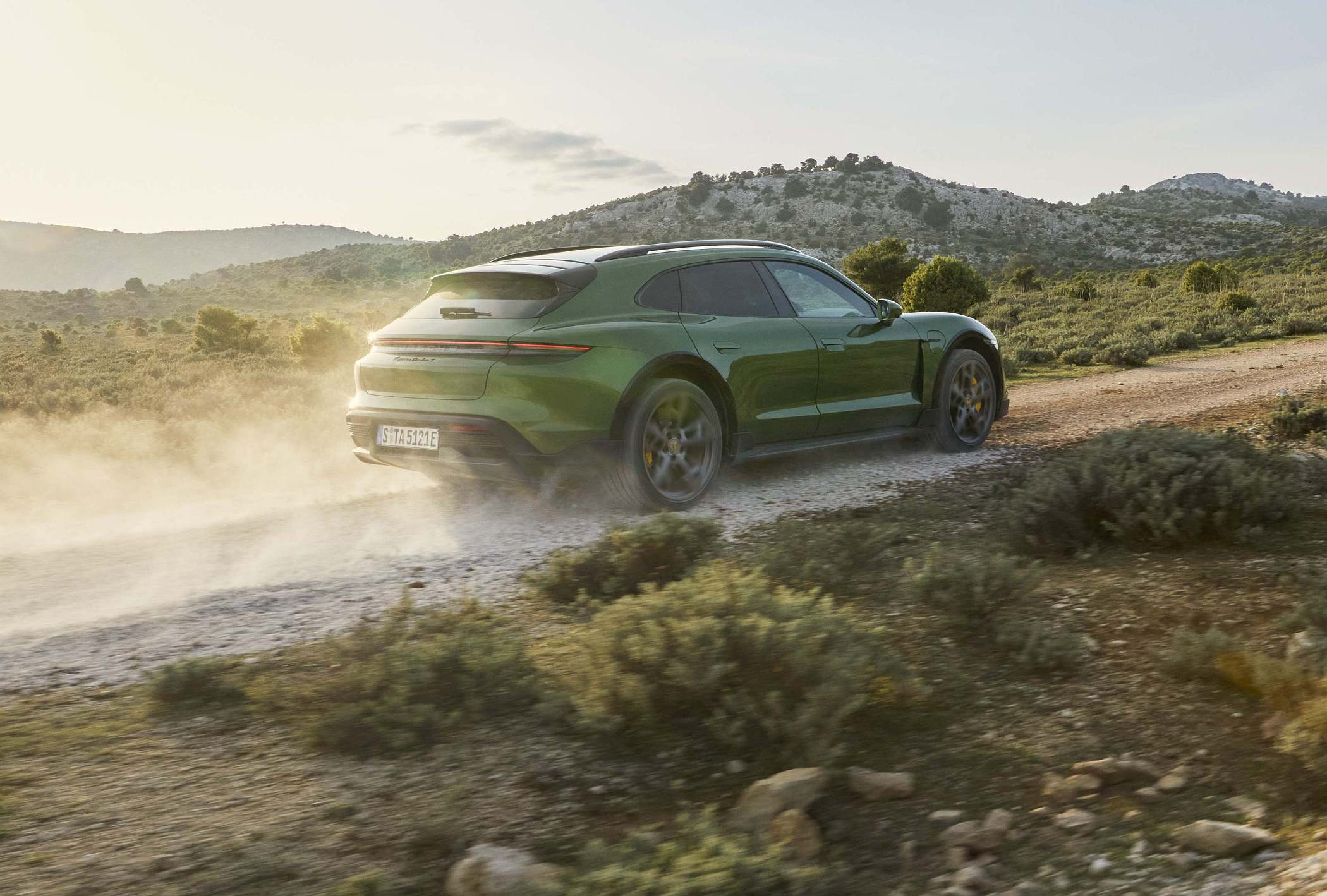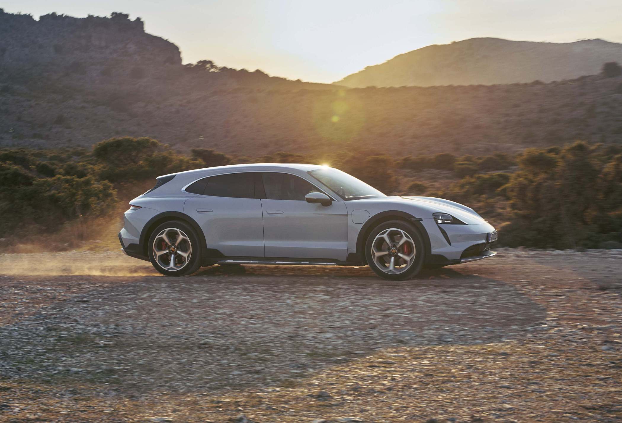 A par dos modos de condução já conhecidos, que vão do ‘Range’ ao ‘Sport +’, o Taycan Cross Turismo acrescenta uma dimensão de robustez com o modo de condução em gravilha ou terra, o ‘Gravel Mode’. Sem transformar o Taycan Cross Turismo num todo-o-terreno ‘puro e duro’, como os próprios responsáveis da marca alemã indicaram anteriormente, o ‘Gravel Mode’ concede ao modelo uma maior competência em terreno ligeiramente acidentado, por exemplo, caminhos de gravilha ou em piso enlameado. Neste modo, há mais 30 mm de altura ao solo do que a berlina, influenciando ainda os sistemas de chassis Porsche Active Suspension Management (PASM), Porsche Traction Management (PTM), Porsche Torque Vectoring Plus (PTV+), Porsche Stability Management (PSM) e a transmissão final traseira. Esta última muda as relações de caixa de forma a beneficiar sempre a tração. Em termos de desenvolvimento da potência e precisão de dosagem, a curva característica do acelerador também foi configurada especificamente para a condução todo-o-terreno.