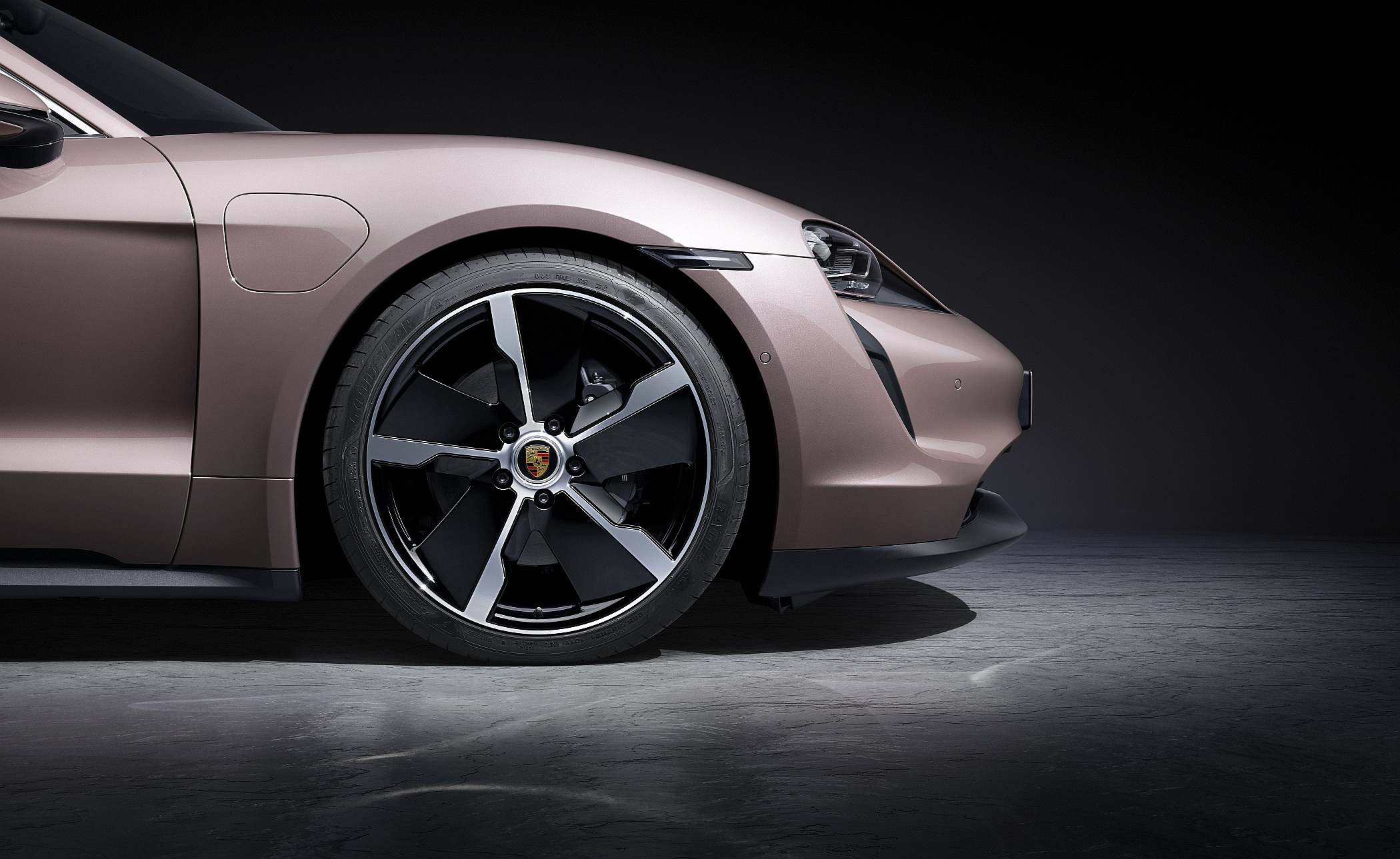Esteticamente, as semelhanças com as demais versões são evidentes e naturais, embora esta variante se demarque pelas jantes Taycan Aero de 19” otimizadas na aerodinâmica e pelas pinças de travão em preto. O spoiler do para-choques dianteiro, as saias laterais e o difusor traseiro em preto são os mesmos que encontramos no Taycan 4S. Os faróis em LED são de série.