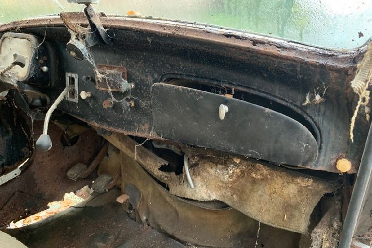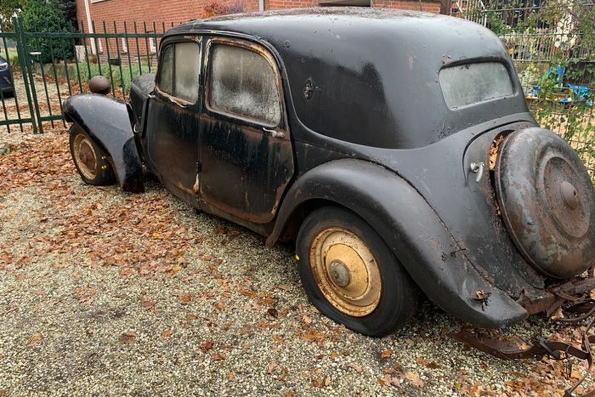 Este exemplar em particular, um Traction Avant 11B do ano de 1949 está equipado com o motor de 2 litros com quatro cilindros e 8 válvulas de fábrica e encontra-se num estado verdadeiramente lastimável, depois de passar grande parte da sua ‘vida’ abandonado num lugar particularmente húmido.