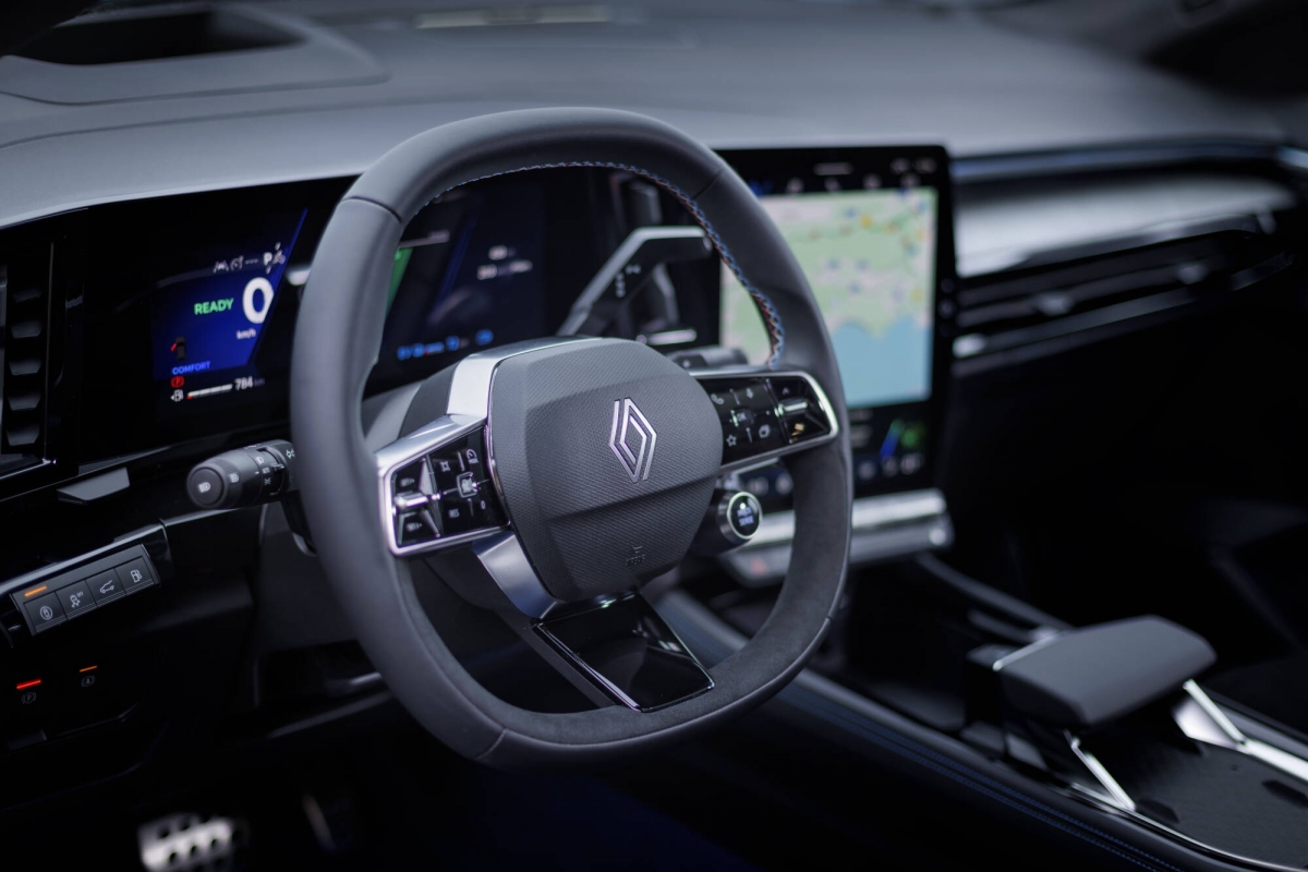 O sistema 4×4 garante um comportamento seguro em várias condições de condução. Nas estradas de montanha sinuosas em que o conduzimos, o Rafale manteve-se composto, com uma direção precisa e um mínimo de rolamento da carroçaria. A suspensão inteligente auto-ajustável, conta com uma câmara no topo do para-brisas para controlo preditivo. Este sistema ajusta o amortecimento continuamente com base na velocidade do automóvel, adaptando-se às condições da estrada à sua frente, como lombas ou piso em mau estado.