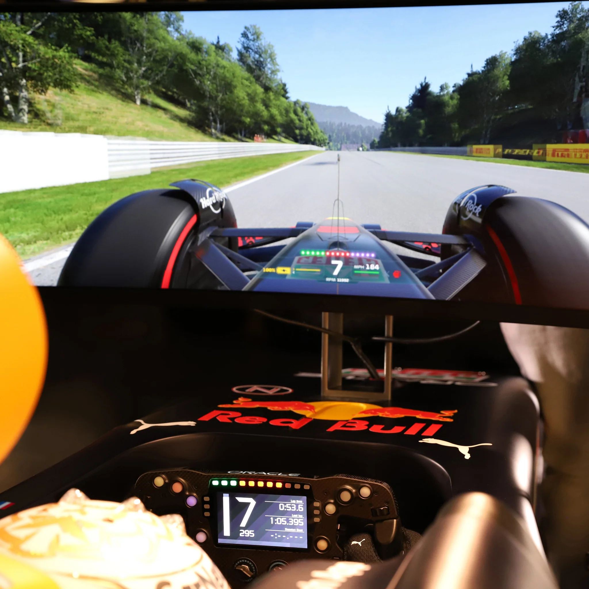 O hardware foi feito em parceria com a equipa de Fórmula 1, com ecrã curvo e altifalantes incluídos. Os pedais podem ser ajustados, bem como a decoração, para que o comprador escolha os números de Max Verstappen ou de Sergio Pérez. O volante foi também especialmente concebido pela Red Bull Racing com ‘force feedback’ e tecnologia de libertação rápida como nos monolugares a sério.