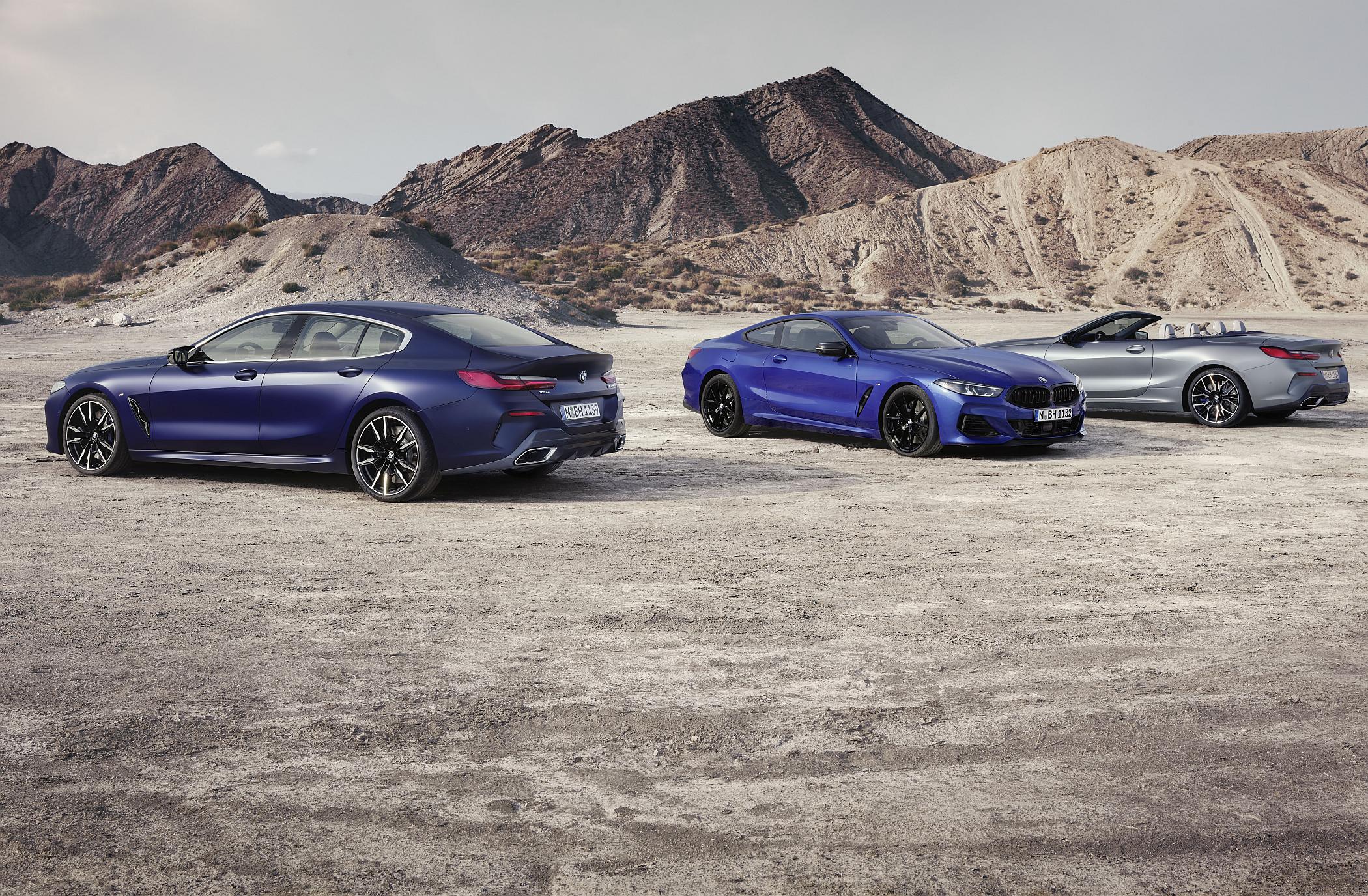 Os faróis dispõem de tecnologia LED adaptativa com distribuição variável do feixe luminoso, com assistente de máximos e luzes de curva incluídos, ao passo que o sistema BMW laser light é disponibilizado como opcional. A grelha iluminada também dispõe de barras verticais redesenhadas. A BMW também anuncia quatro novas cores exteriores (cinzento ‘Skyscraper Grey’ metalizado, verde ‘San Remo Green’ metalizado, azul ‘M Portimao Blue’ metalizado e azul ‘BMW Individual Frozen Tanzanite Blue’ metalizado) e outras opções de jantes de 20 polegadas (incluindo variante M Performance também de 20 polegadas para os Série 8 de motor de oito cilindros).