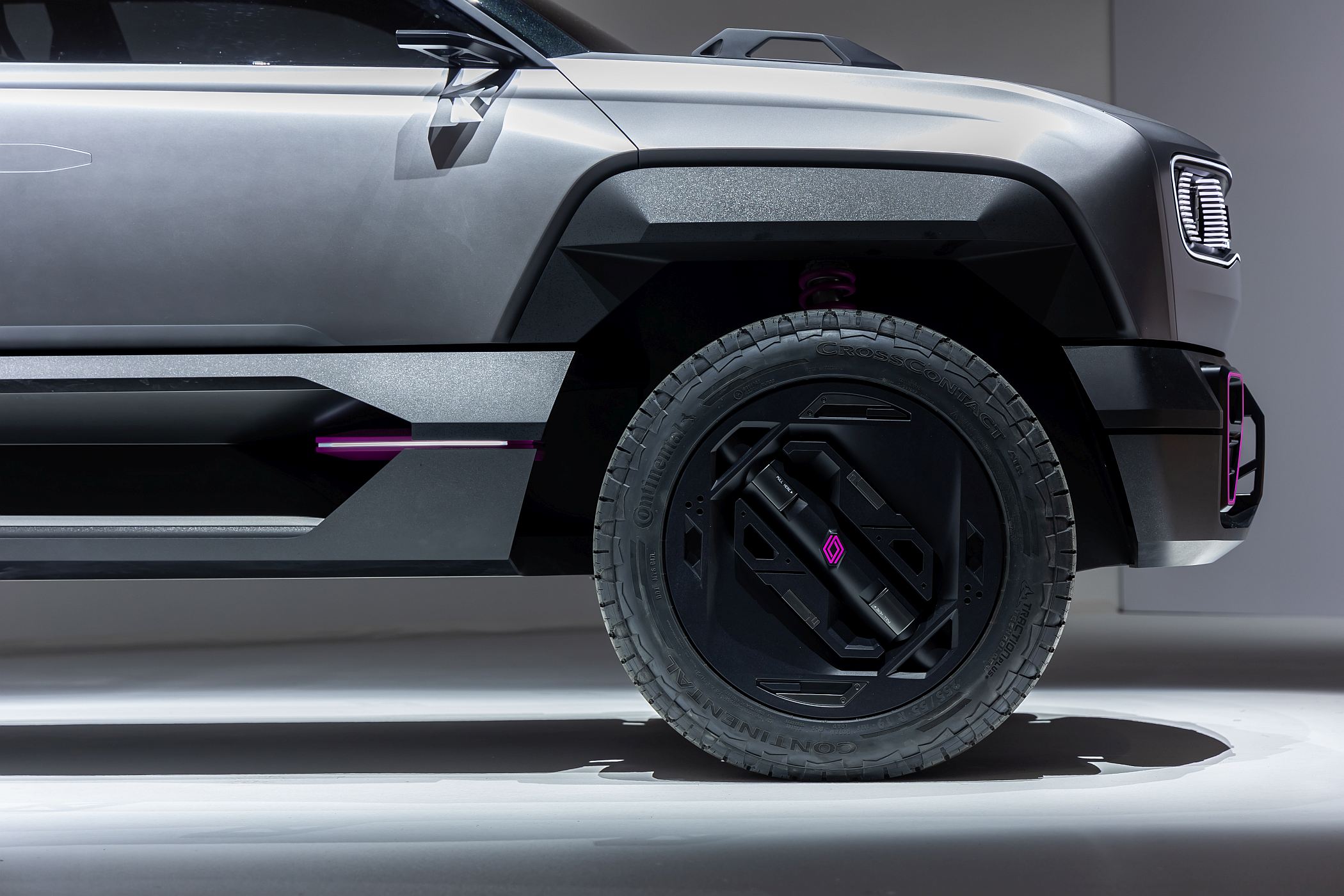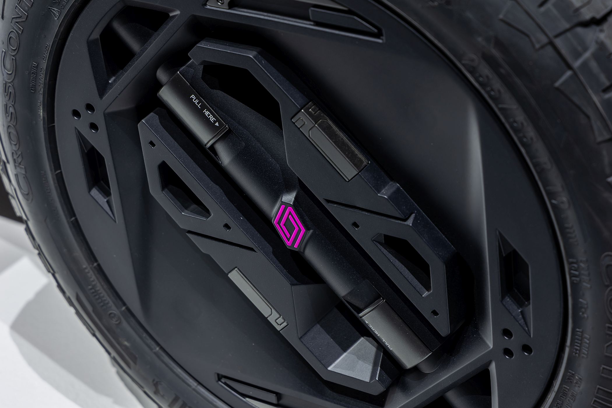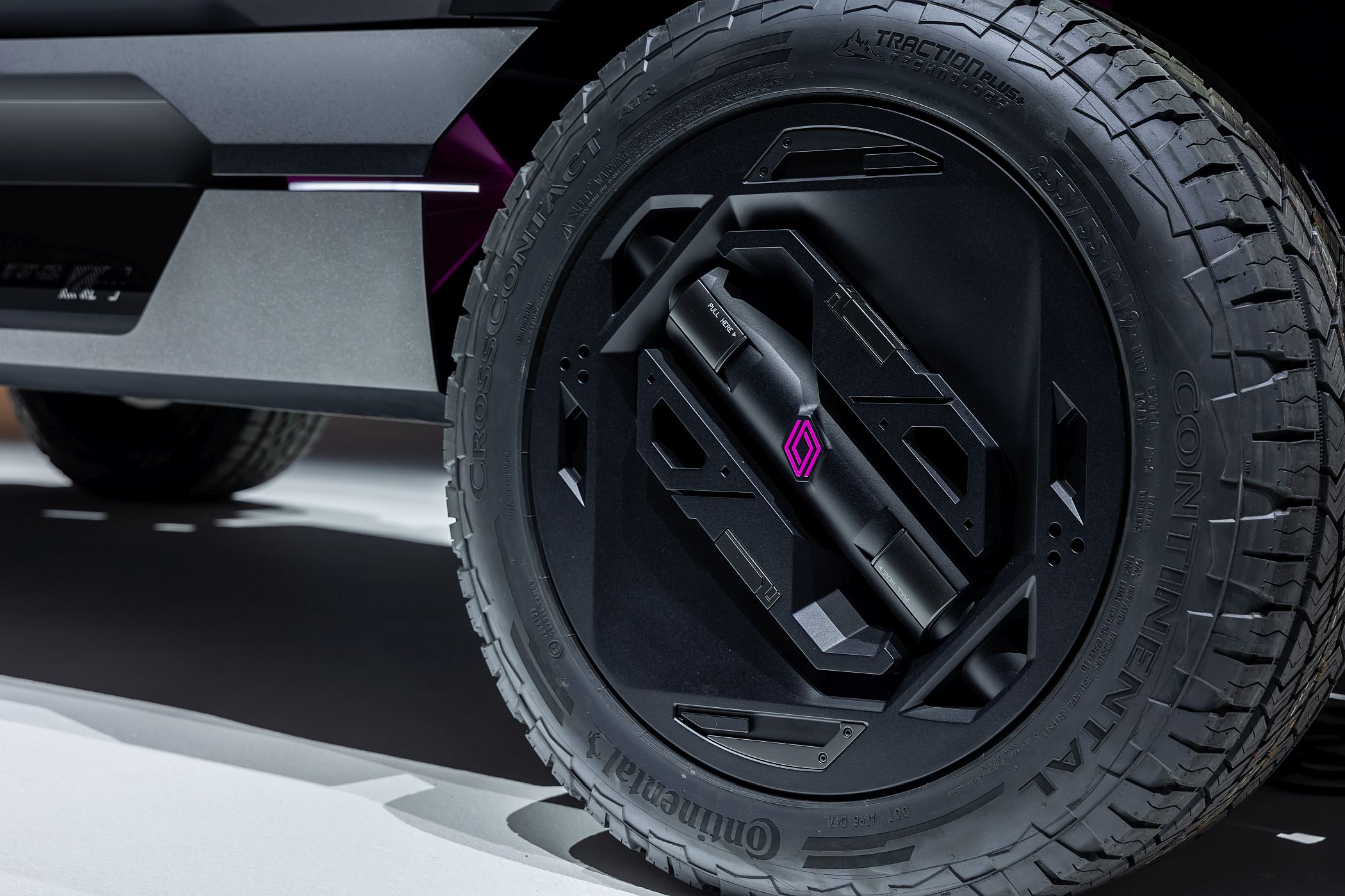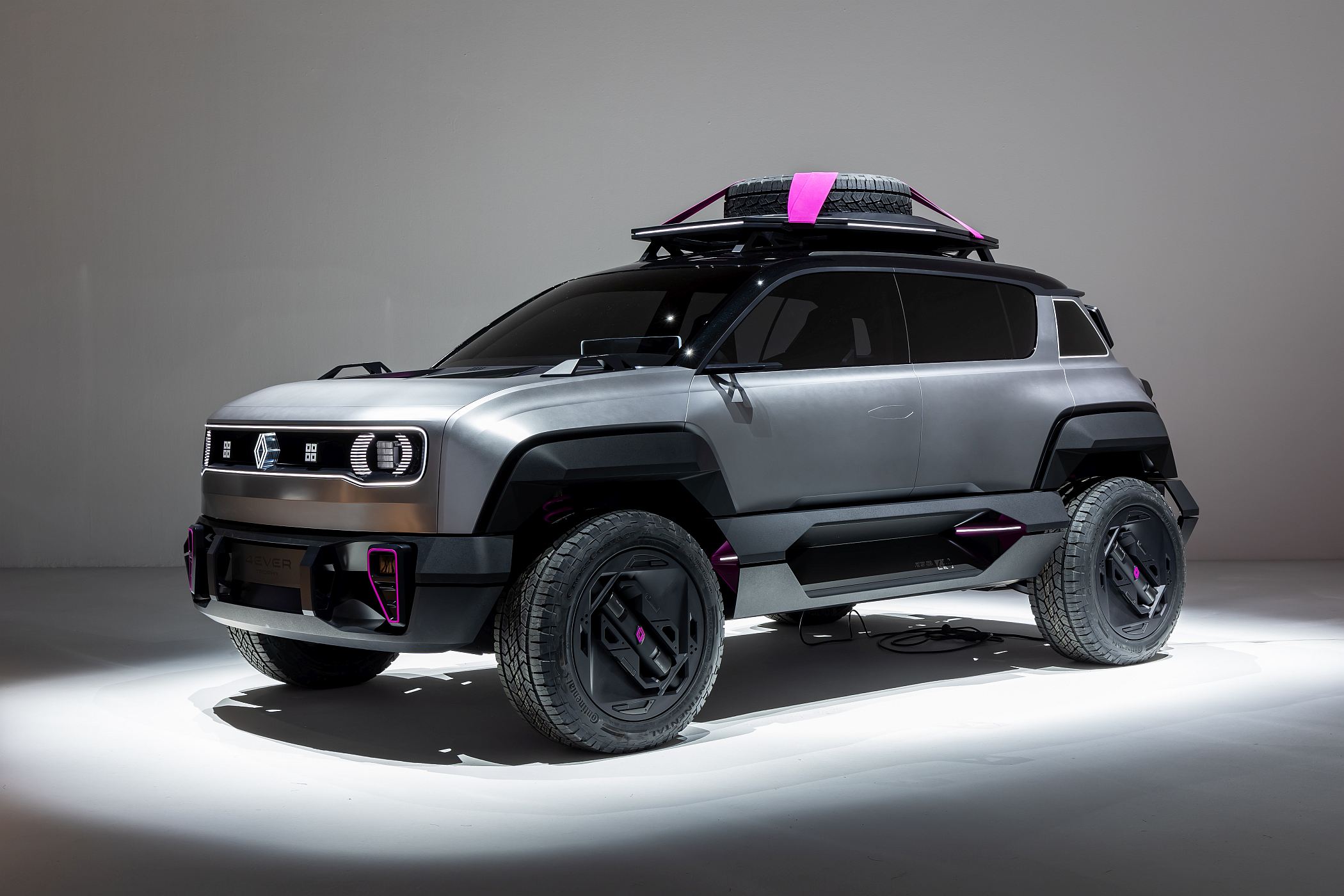 No entanto, a versão final será previsivelmente menos aventureira, abdicando da área inferior mais arrojada que convida, no 4EVER Trophy, a explorar terrenos mais extremos. Os pneus para pisos de terra ou neve, a elevada altura ao solo com suspensão reforçada, bem como o pneu suplente no tejadilho em fibra de carbono, apontam para viagens em ambientes mais agrestes. Outros itens que denunciam o seu espírito sem limites são a pá e as placas para utilização em ambientes de areia, nos quais a motricidade pode ser débil em determinadas condições. Aliás, a pensar nessa mesma situação, as rodas de 19 polegadas dispõem de um mecanismo incorporado de variação de pressão dos pneus (a partir do interior), ajudando assim a superar ‘atascanços’ nas dunas.