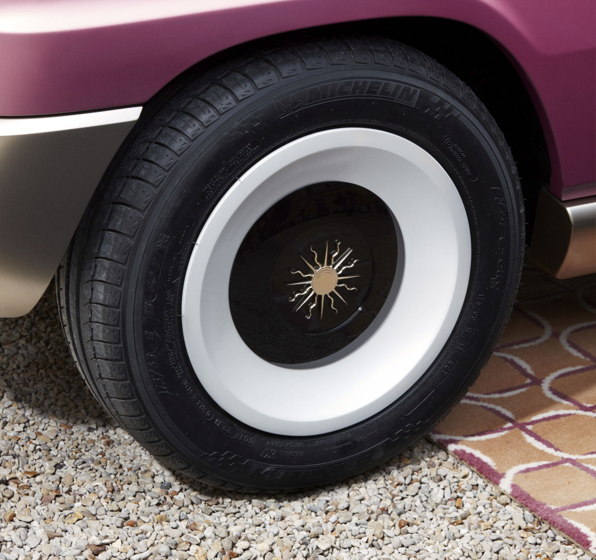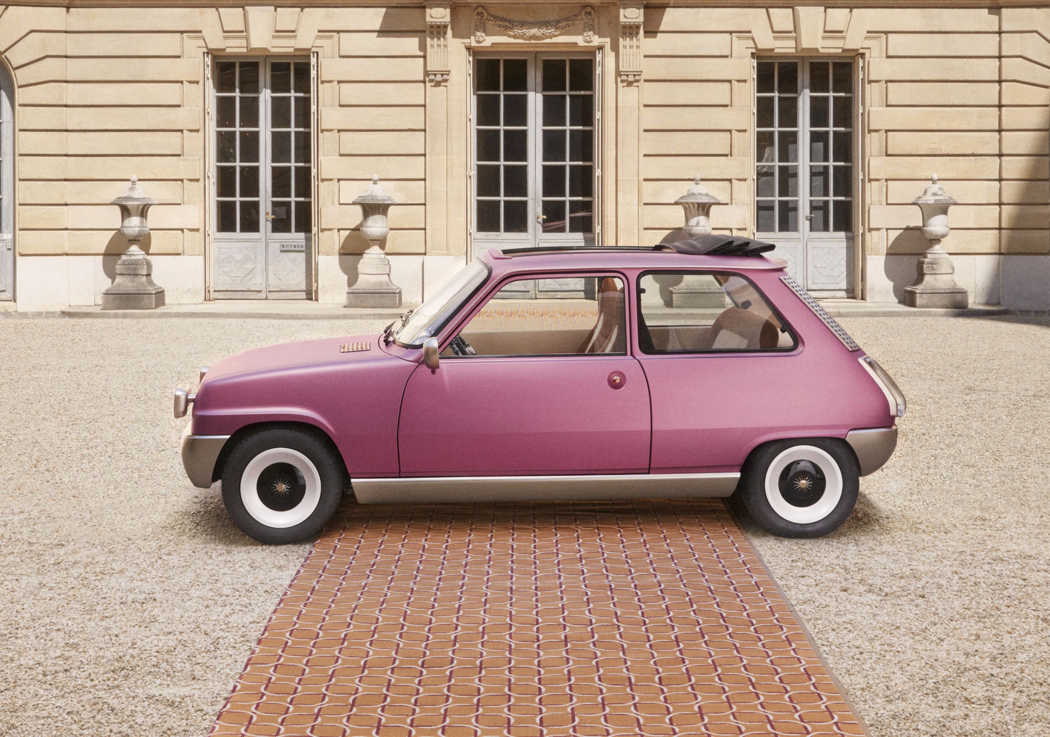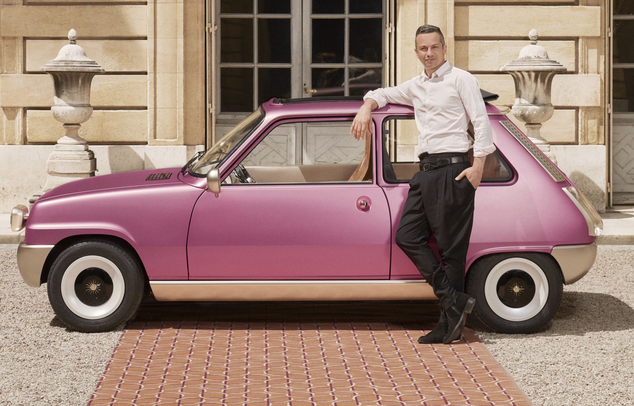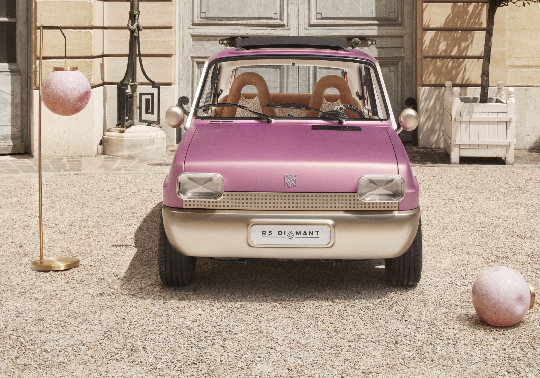 Entre os elementos mais chamativos estão os faróis destacados da carroçaria na dianteira, a que se junta a grelha simplista perfurada e o para-choques maciço e sem aberturas. As rodas são provenientes das unidades utilizadas na versão Alpine mais desportiva, enquanto o perfil é ainda marcado pelos espelhos circulares cromados para uma perfeita sensação ‘retro’. Já as pegas das portas (por fora e por dentro) são agora em formato de esferas douradas com banho de ouro.