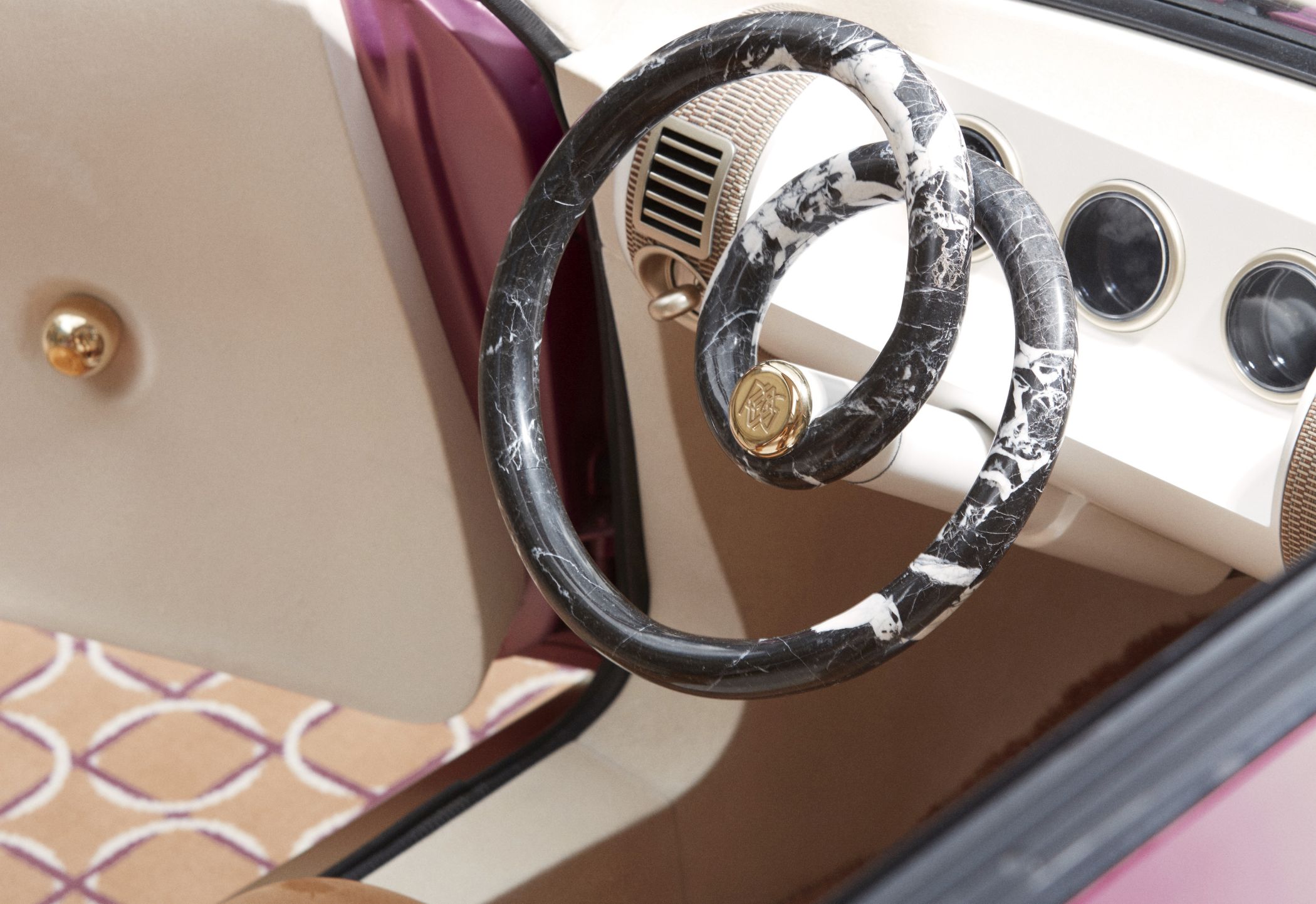 Adicionalmente, este mesmo conceito pode ser visto também nos controlos dos vidros e na alavanca da caixa, uma vez no interior. A irreverência do exterior é ainda reforçada pela cor de três camadas em cor de rosa com pigmentação dourada para variar a sua tonalidade consoante as condições de luminosidade. A zona inferior da carroçaria está pintada noutra tonalidade combinada de dourado e bege. Também os logótipos são completamente novos e criados para esta versão exclusiva.