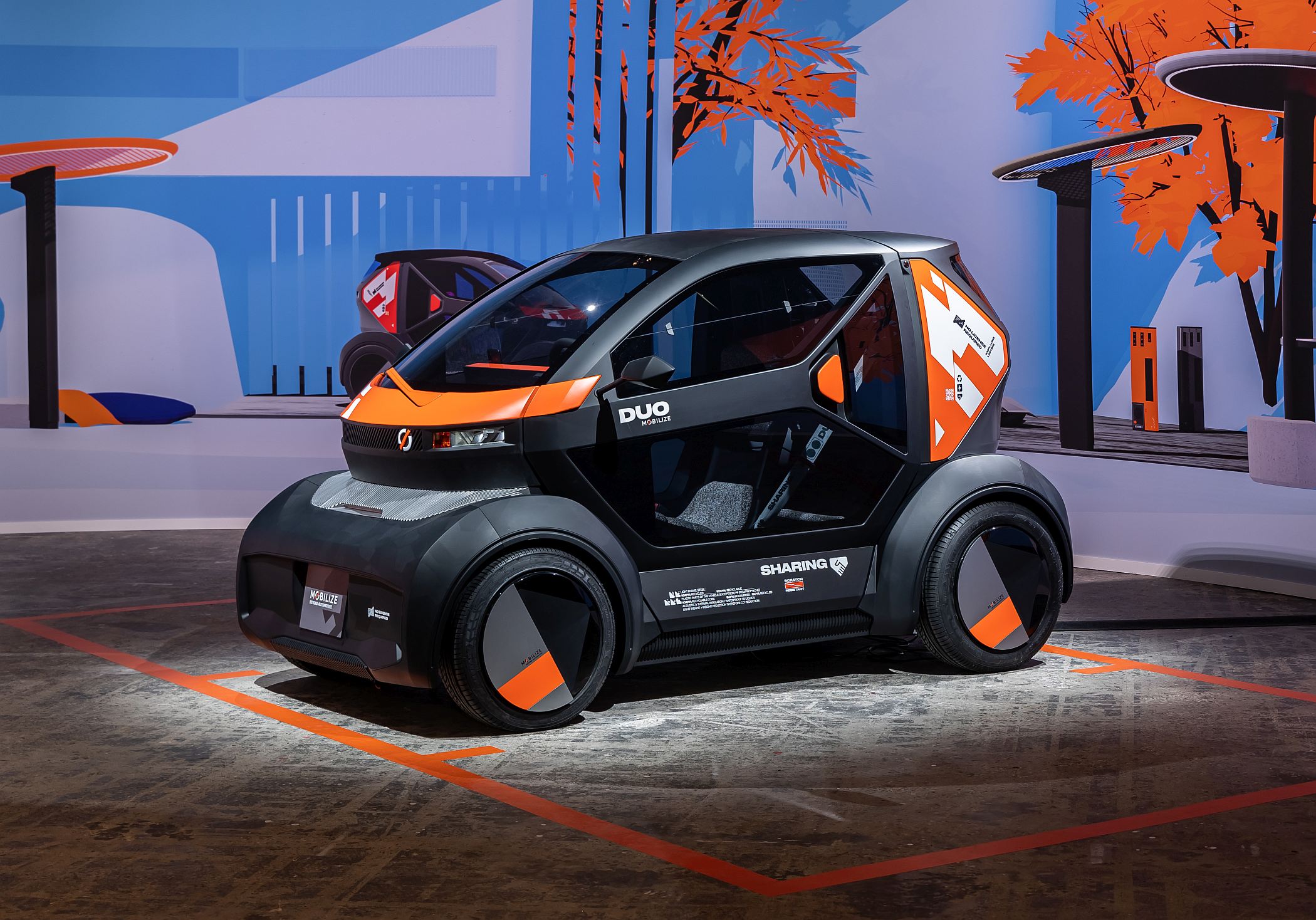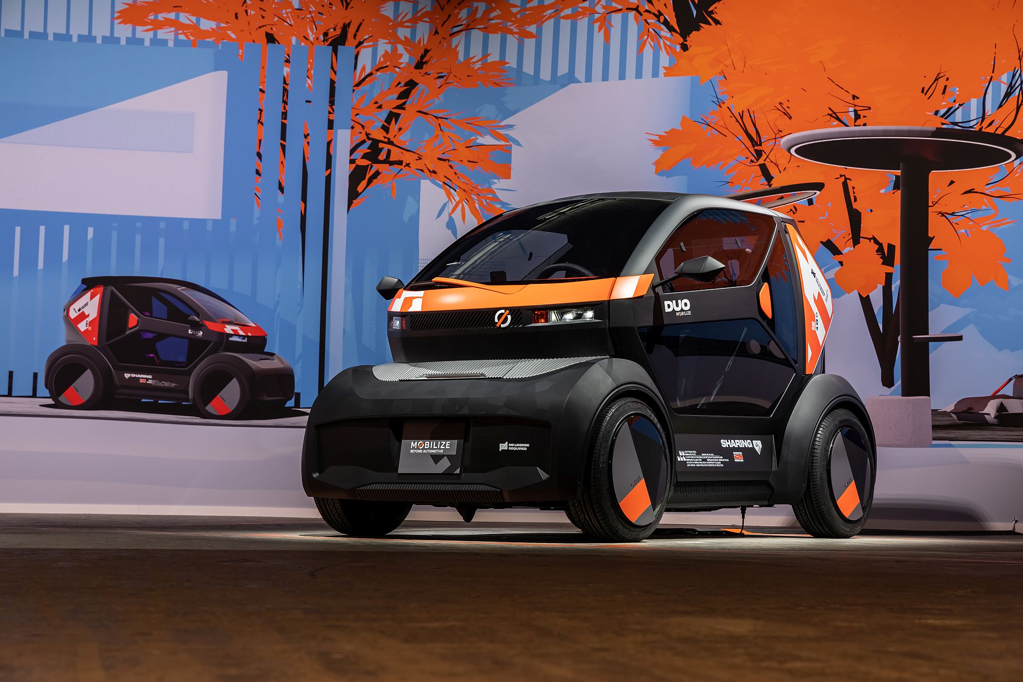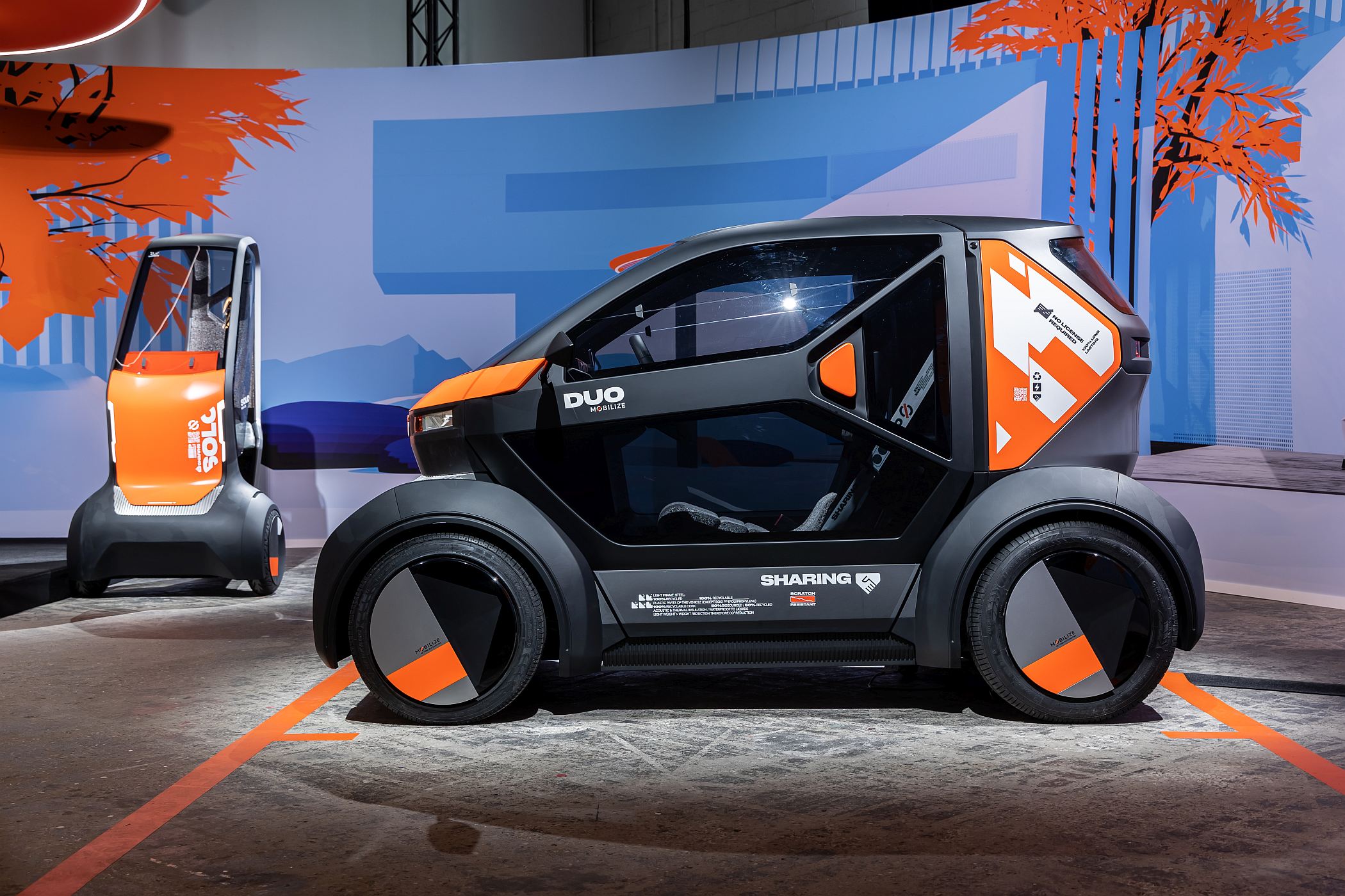 O primeiro dos veículos altamente eficientes em energia e espaço para assegurar a mobilidade pessoal é o Mobilize Duo, que pode ser considerado como um sucessor do Twizy. Este micro-veículo 100% elétrico foi adaptado para a mobilidade na cidade, oferecendo dois lugares no interior, em tandem, com um estilo interior altamente irreverente que é caracterizado por um toque da cultura ‘pop’. A Renault apelida esse design de ‘Ghetto Blaster’, recuperando um pouco da ideia dos anos 1980 com os rádios que se levavam ao ombro.
