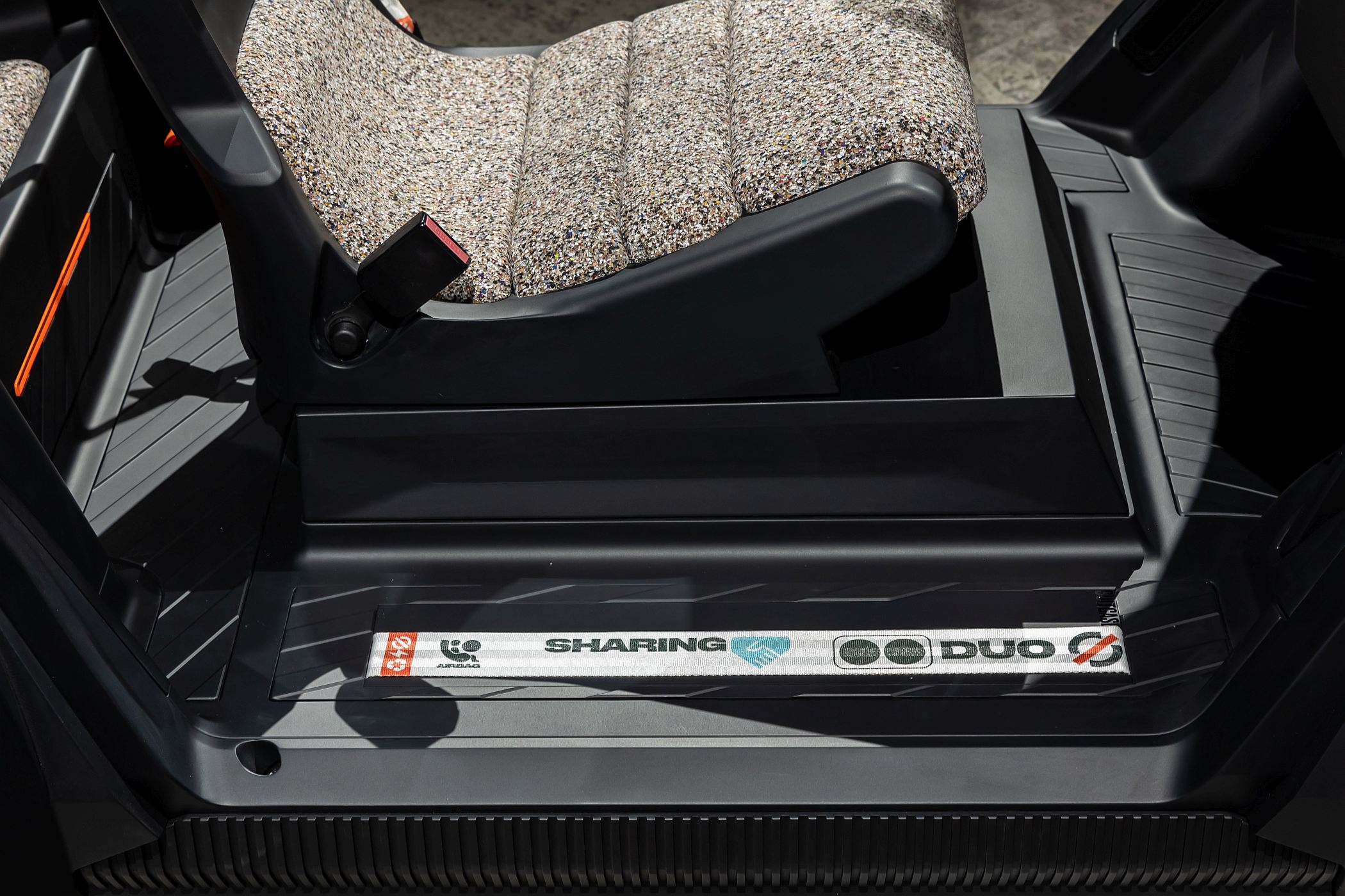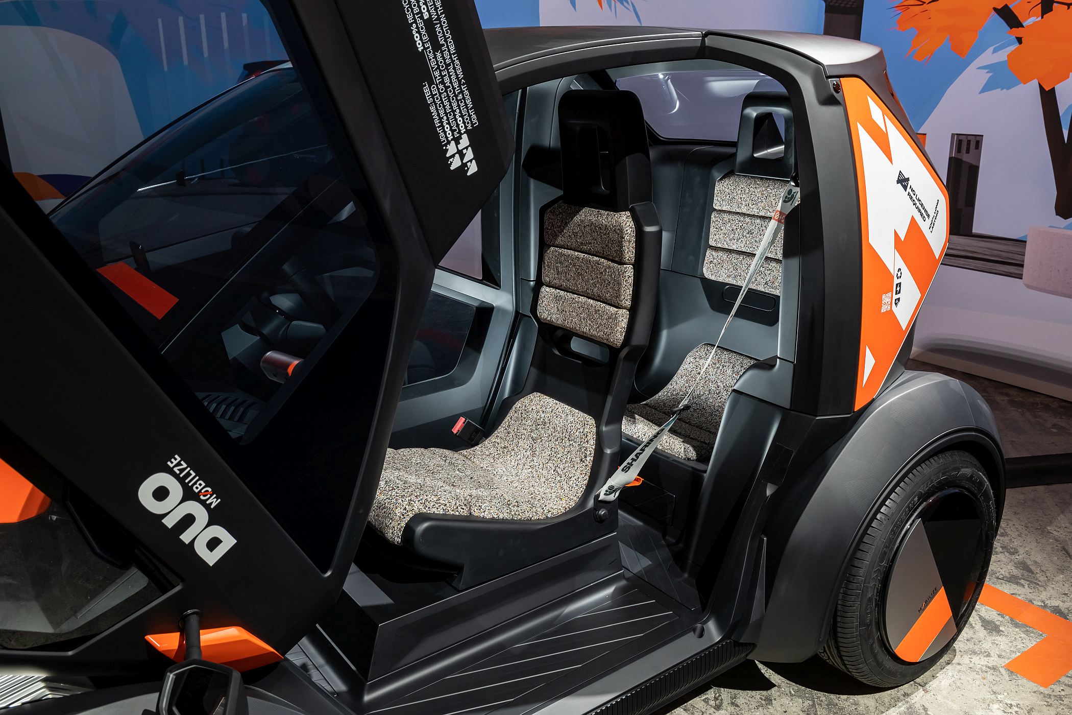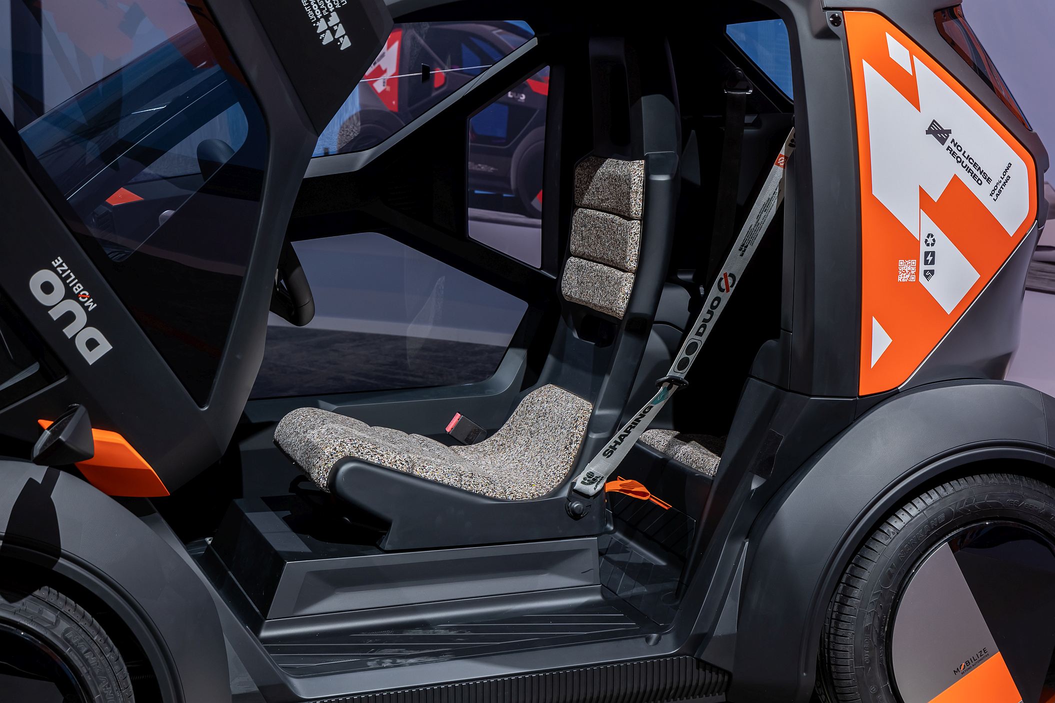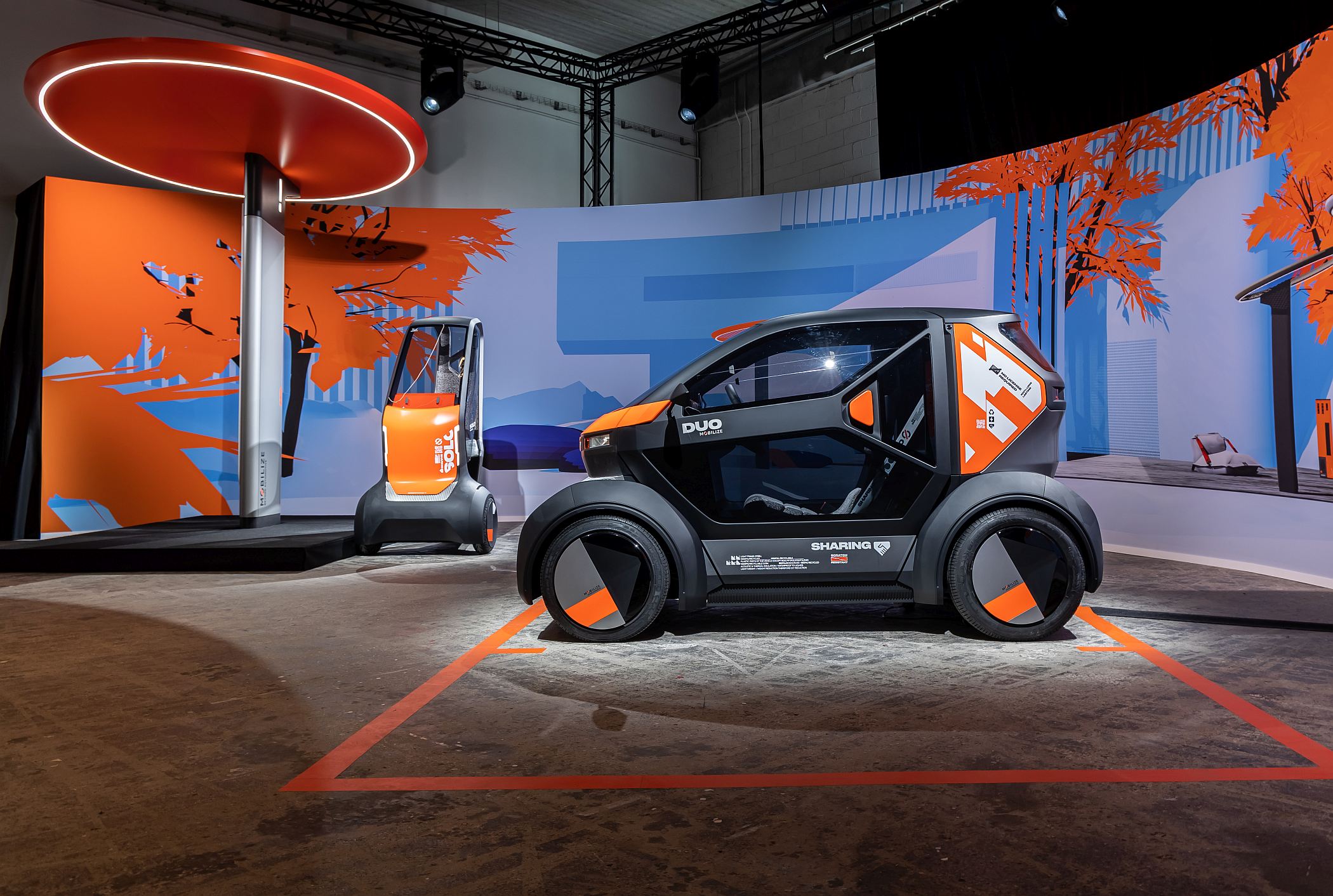 O primeiro dos veículos altamente eficientes em energia e espaço para assegurar a mobilidade pessoal é o Mobilize Duo, que pode ser considerado como um sucessor do Twizy. Este micro-veículo 100% elétrico foi adaptado para a mobilidade na cidade, oferecendo dois lugares no interior, em tandem, com um estilo interior altamente irreverente que é caracterizado por um toque da cultura ‘pop’. A Renault apelida esse design de ‘Ghetto Blaster’, recuperando um pouco da ideia dos anos 1980 com os rádios que se levavam ao ombro.