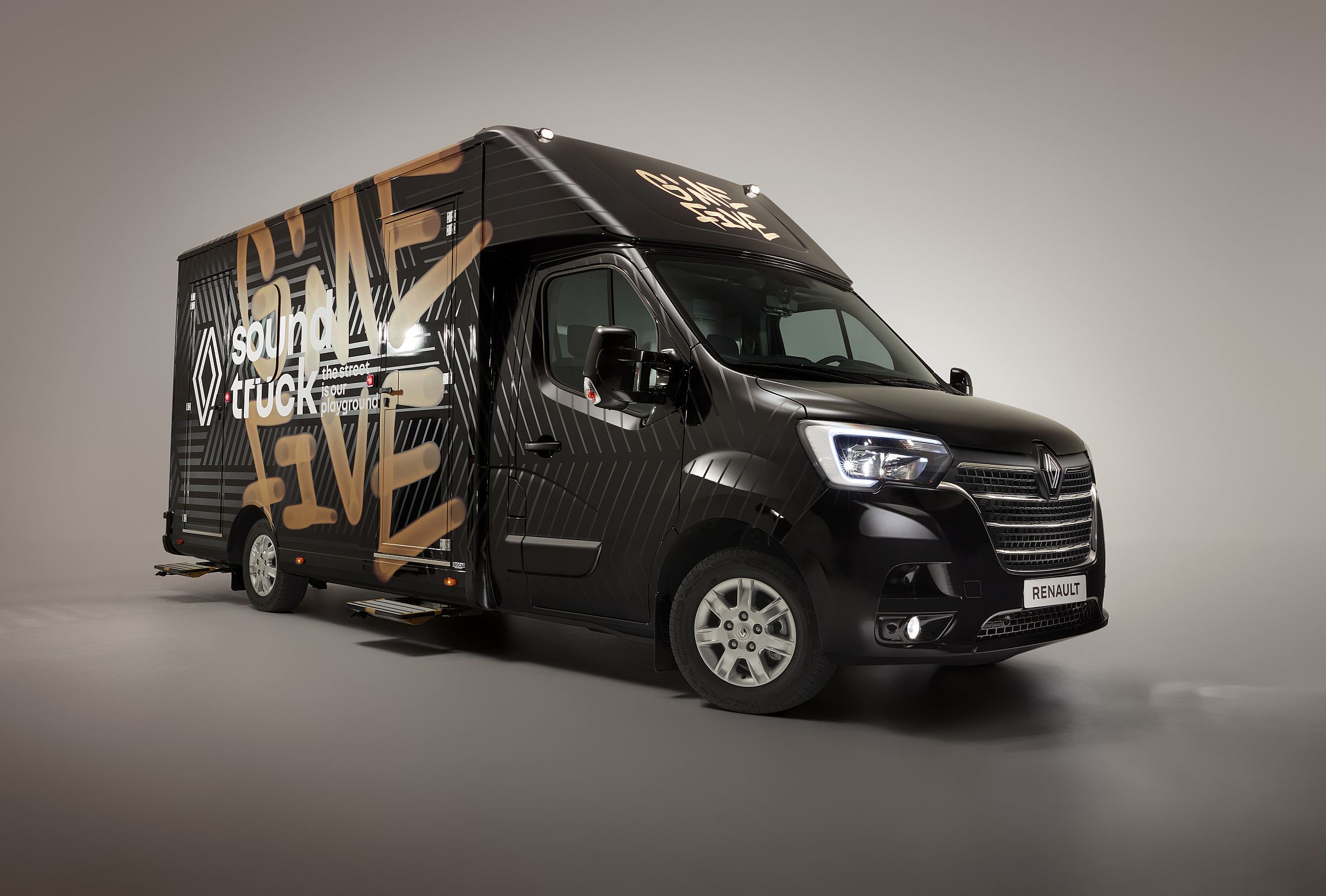 A Renault concebeu um dos derradeiros veículos sonoros com recurso a um Master. Este ‘camião de som’, como foi denominado pela marca francesa, é um estúdio de gravação profissional totalmente funcional sobre rodas, criado em colaboração pela Renault e pelos seus parceiros no âmbito de uma iniciativa de responsabilidade social dedicada às novas gerações, o “Give Me 5”.