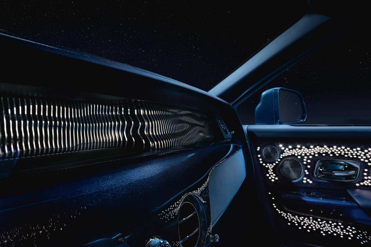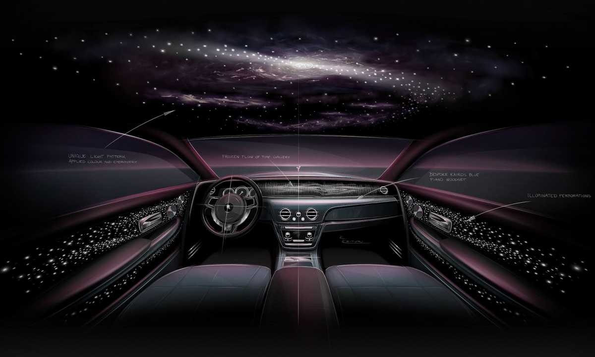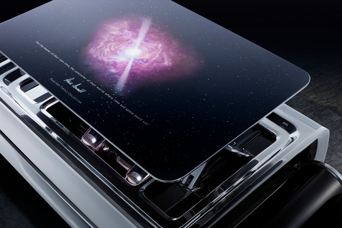 O Phantom Tempus Collection conta com uma pintura exclusiva Kairos Blue que incorpora escalas de minerais para produzir um brilho subtil que recorda as estrelas. Mas mais impactante é o interior, que com uma decoração no teto com a representação de um pulsar, que é o nome que se dá ao fenómeno pelo qual uma estrela emite uma radiação eletromagnética em intervalos incrivelmente regulares. Ou seja, não existe um relógio verdadeiramente dito no habitáculo desta ‘superberlina’, mas sim a representação do relógio natural mais preciso que existe no universo.