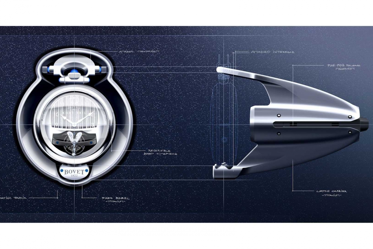 As peças – produzidas em versões para homem e para mulher – são reversíveis e alojados numa caixa patenteada Amadeo de BOVET 1822, que permite que se utilizem no pulso, como relógio de mesa, como relógio de bolso ou instalado no painel de bordo do carro, como parte do equipamento e perfeitamente integrado. O que obrigou a um criterioso e demorado processo de homologação, cumprindo exigentes padrões de segurança.