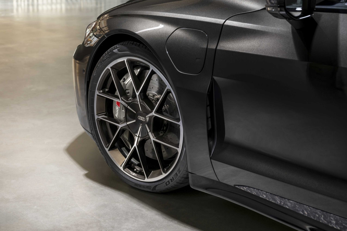 O Audi RS e-tron GT Performance vem de série com jantes de 20 polegadas. Os pneus, otimizados para resistência ao rolamento nas novas jantes de múltiplos aros, garantem uma maior autonomia. As versões opcionais de 21 polegadas oferecem cinco designs de jantes e dois tipos de pneus com características distintas. Os pneus Bridgestone Potenza Sport possuem uma resistência ao rolamento muito baixa, o que melhora o consumo de energia e a autonomia.