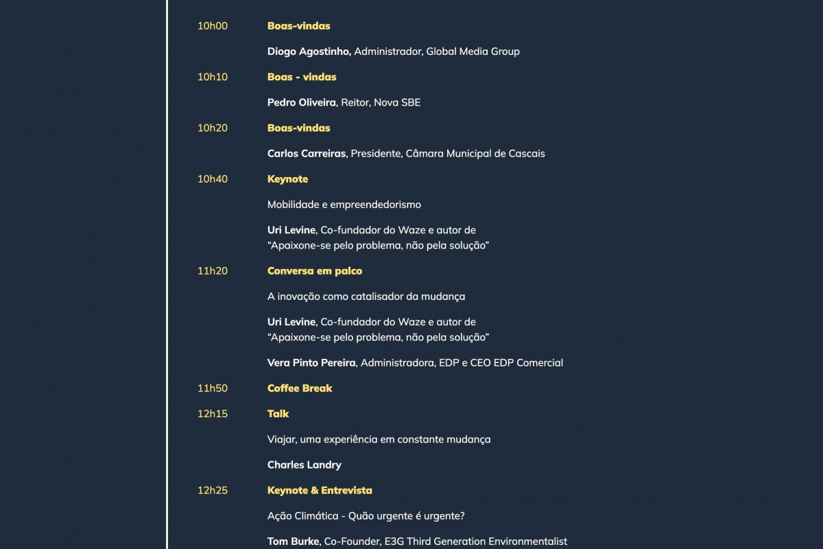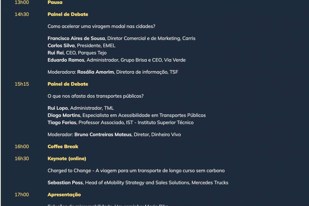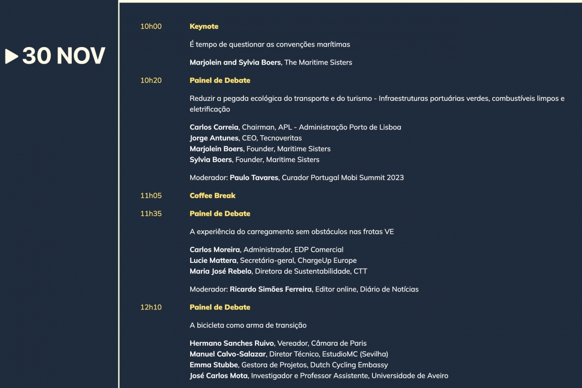 Nos dias 29 e 30 de novembro, a Grande Cimeira do Portugal Mobi Summit junta vozes de referência em temas como mobilidade sustentável, smartcities, transição energética, transição digital, inovação, ou políticas públicas de transporte e planeamento urbano. Serão dois dias de debate na Nova SBE, em Cascais, que contam com um vasto painel de oradores e convidados nacionais e internacionais.