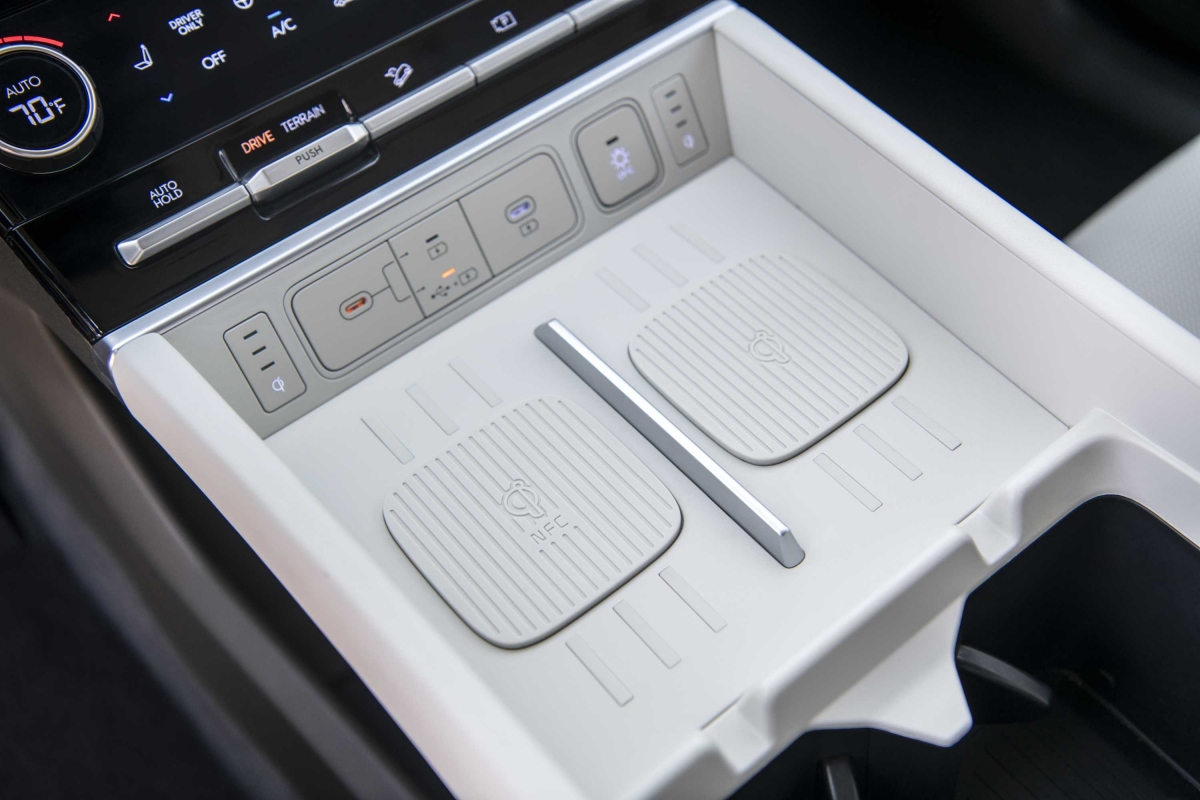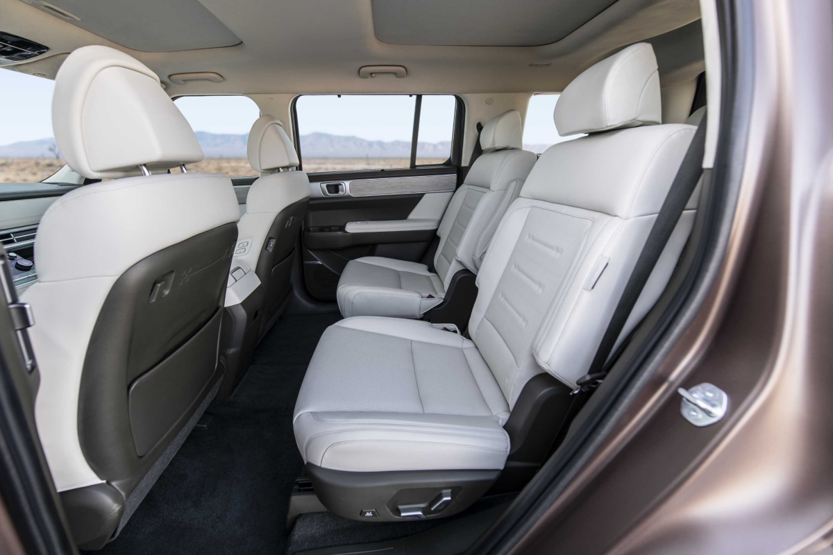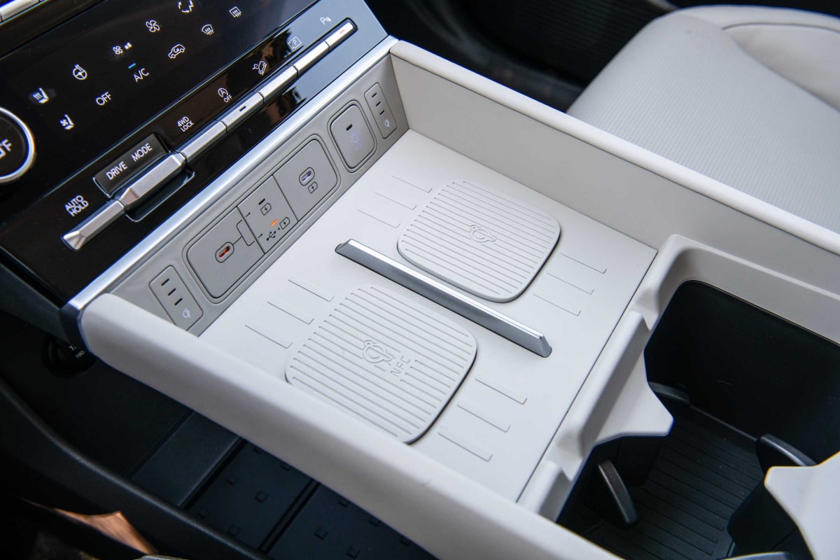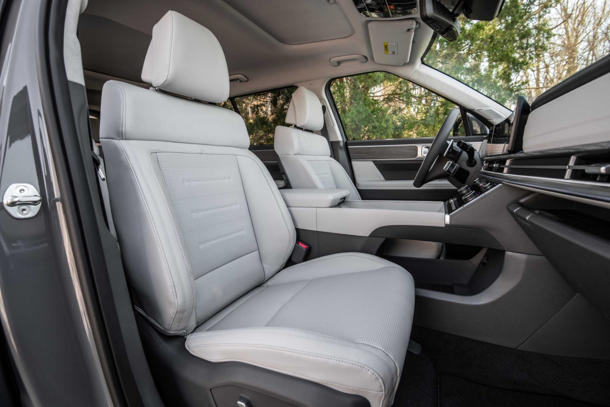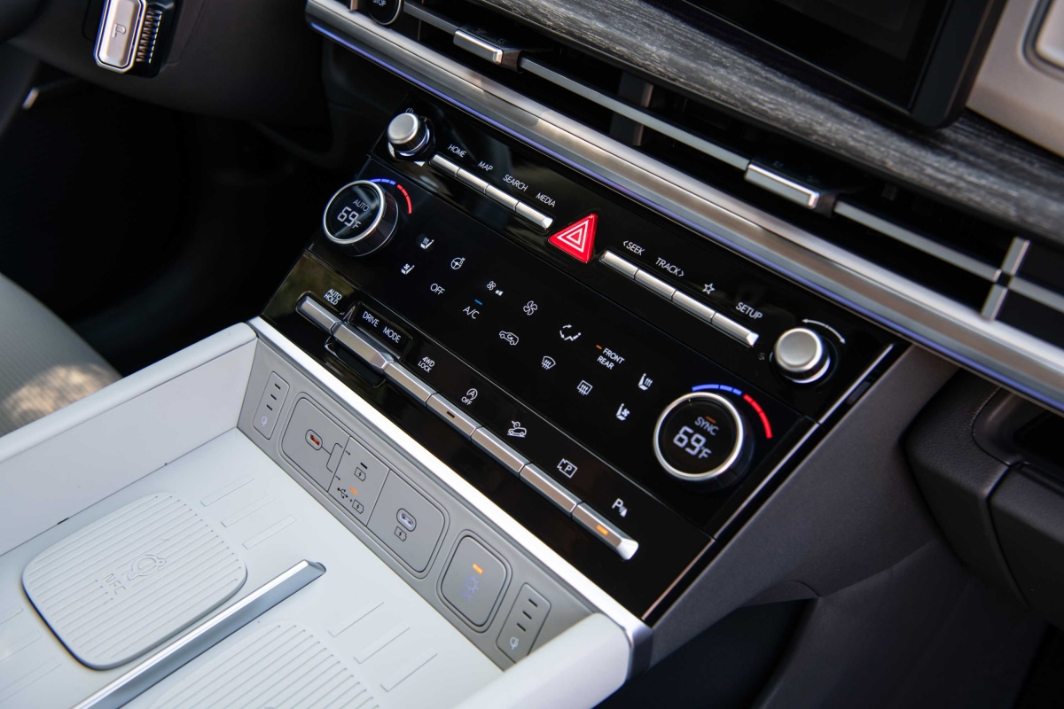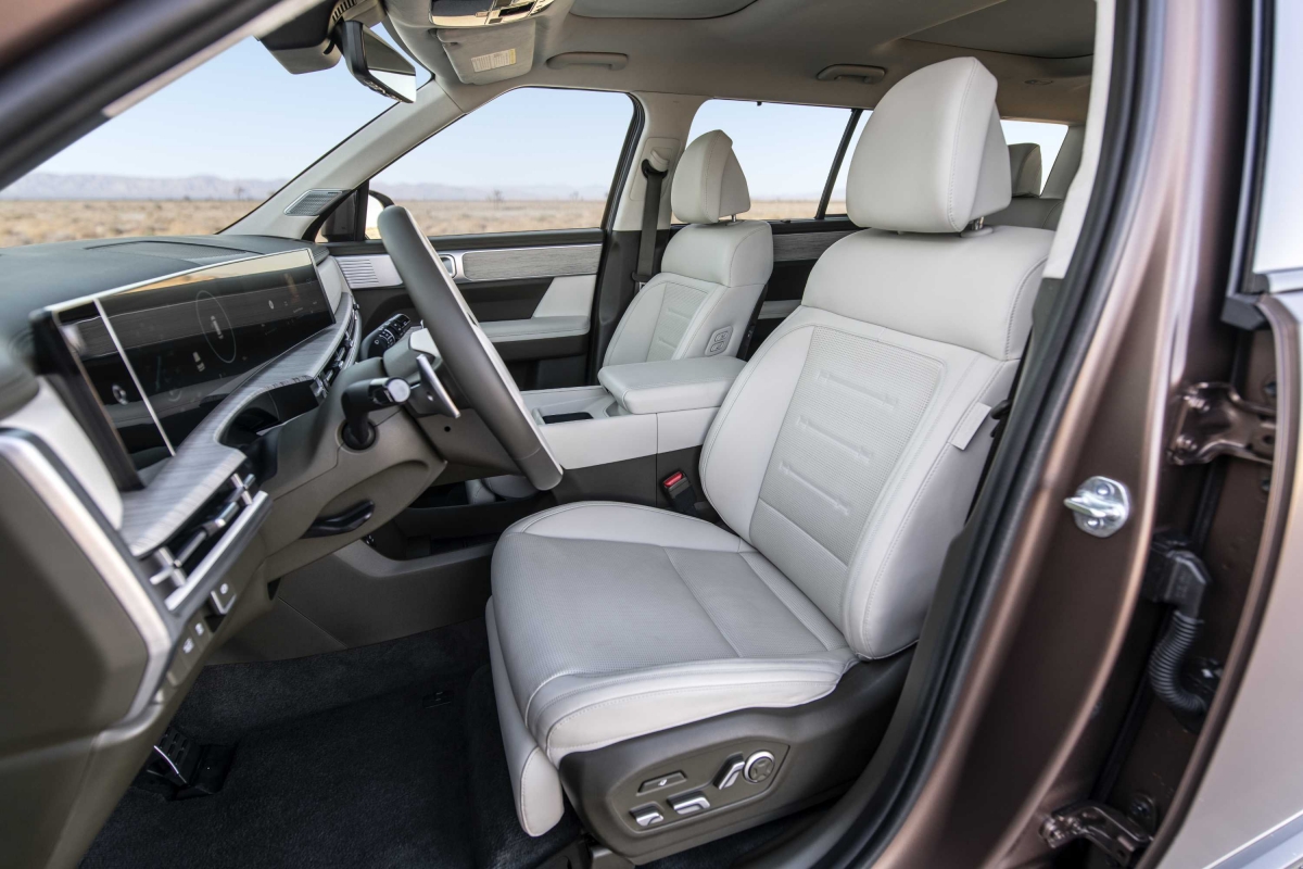 O novo tabliê do Hyundai Santa Fe segue a linha do Tucson – como tivemos já oportunidade de salientar na apresentação do SUV do segmento C –, com um design horizontal, mas a consola central apresenta uma diferença. Embora o uso de plásticos duros seja notável, não compromete o ambiente de luxo a bordo. Um destaque é o ecrã curvo panorâmico, considerado o primeiro da sua classe, que integra o painel de instrumentos digital de 12,3 polegadas e o sistema de infoentretenimento, conferindo um toque sofisticado ao interior do modelo. Com a crescente tendência minimalista nos novos modelos de carros, talvez o Santa Fe pudesse ter optado por esconder alguns botões, oferecendo uma aparência ainda mais limpa e moderna.