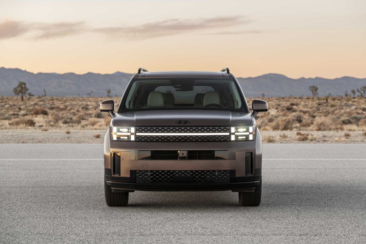 A quinta geração do Hyundai Santa Fe apresenta um design robusto e imponente, marcado por linhas musculadas que evocam aventura e lazer. Desenvolvido para experiências fora de estrada, destaca-se como um modelo ideal para passeios familiares. O capô elevado domina a dianteira, complementado por faróis em forma de H que reforçam o caráter do veículo. Logo abaixo, o para-choques altivo confere uma presença distinta, sublinhando o estilo arrojado e funcional do SUV premium da Hyundai.