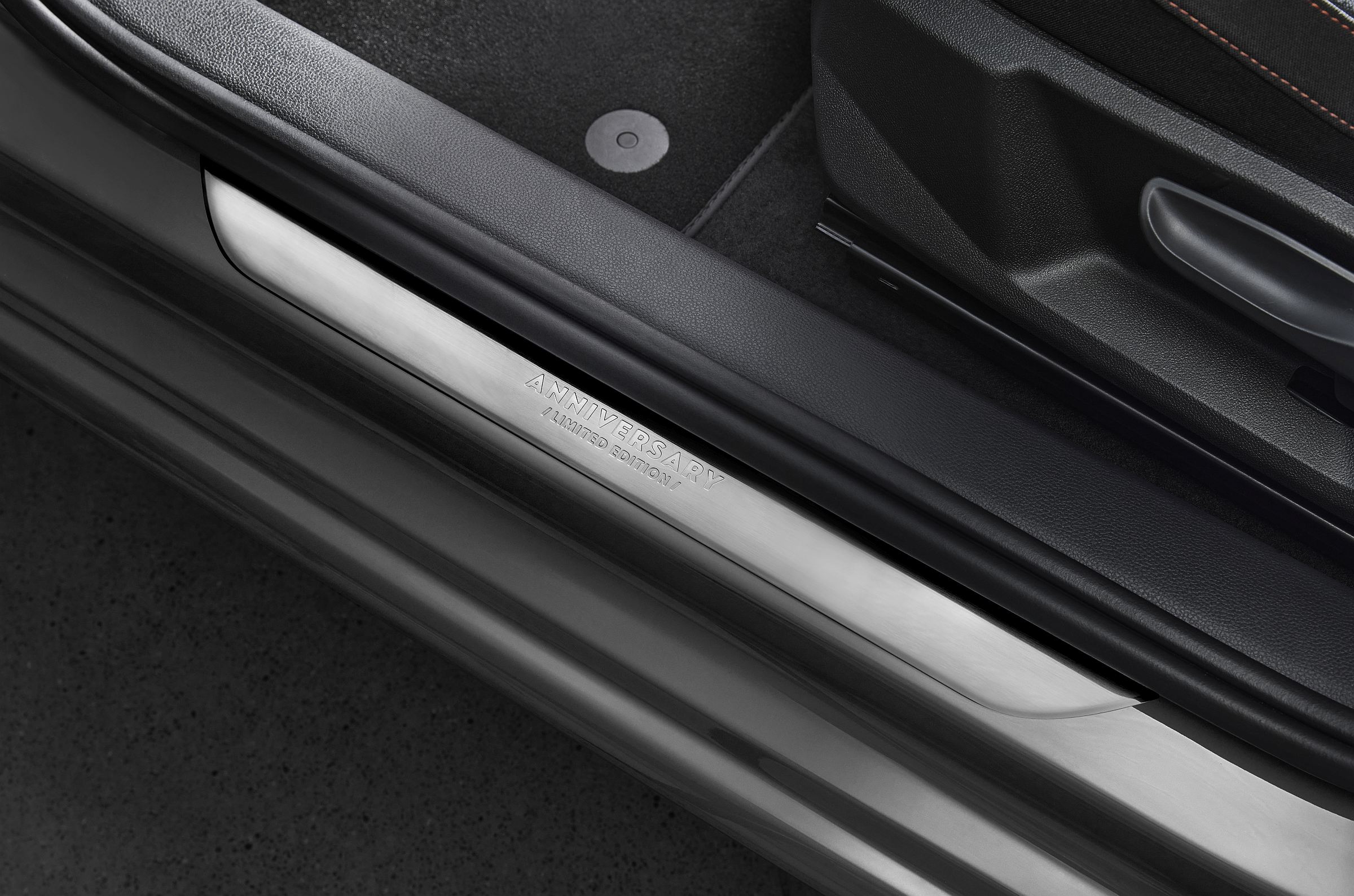 No habitáculo, os bancos ‘Bucket’ em tecido exclusivo conferem um novo patamar de dinamismo e conforto aos ocupantes da frente, enquanto o acabamento mate em alumínio ‘Dark’ nas portas e na consola, juntamente com o logótipo “Anniversary Limited Edition” gravado a laser na soleira da porta, proporcionam um toque renovado ao interior.