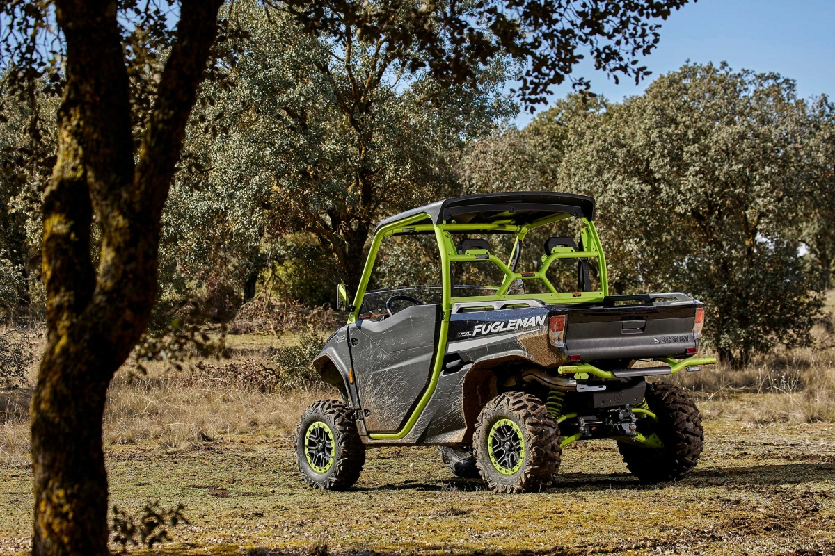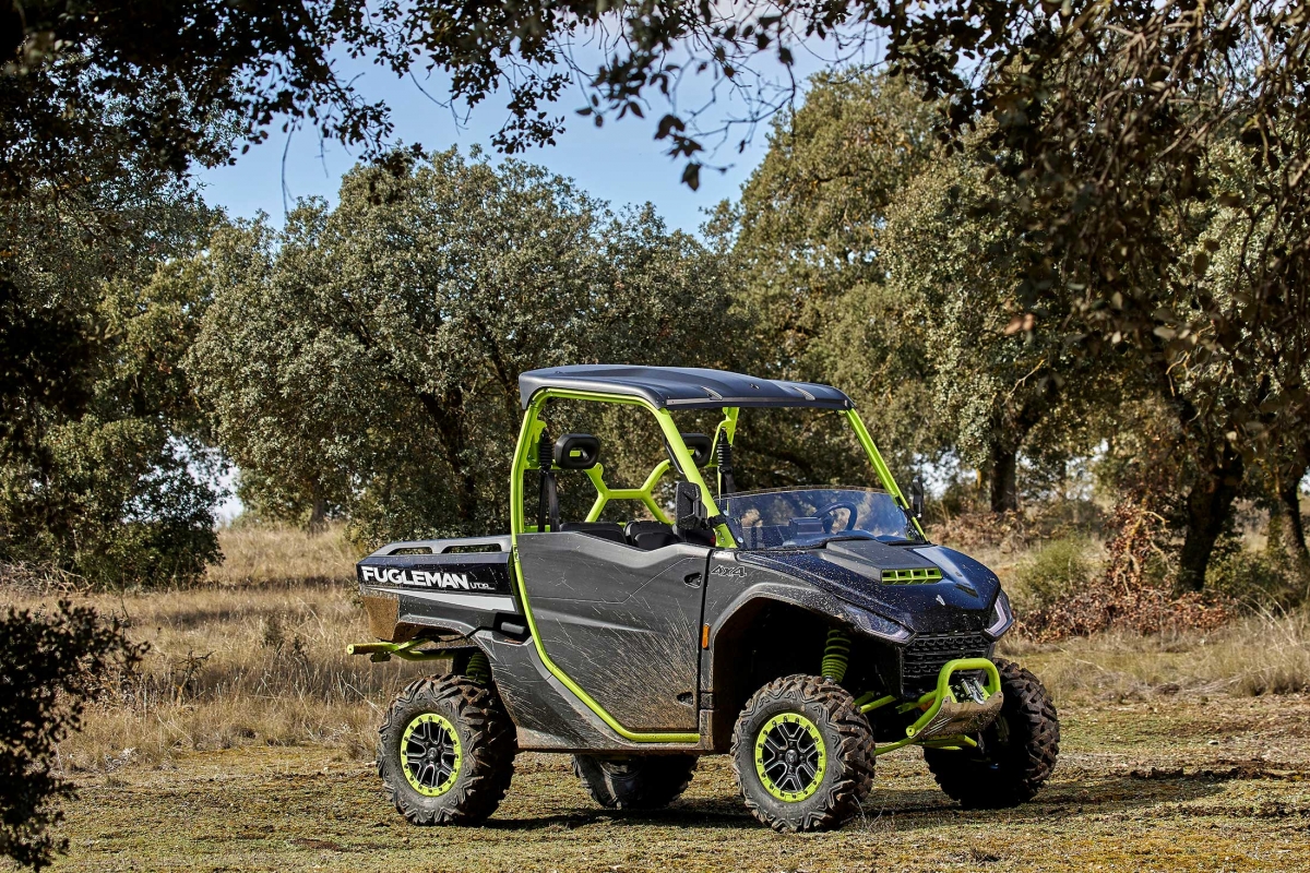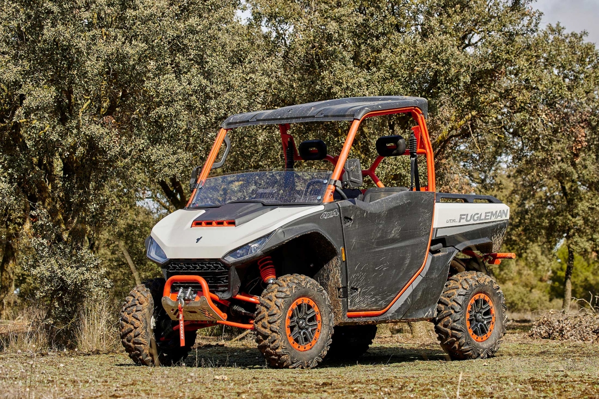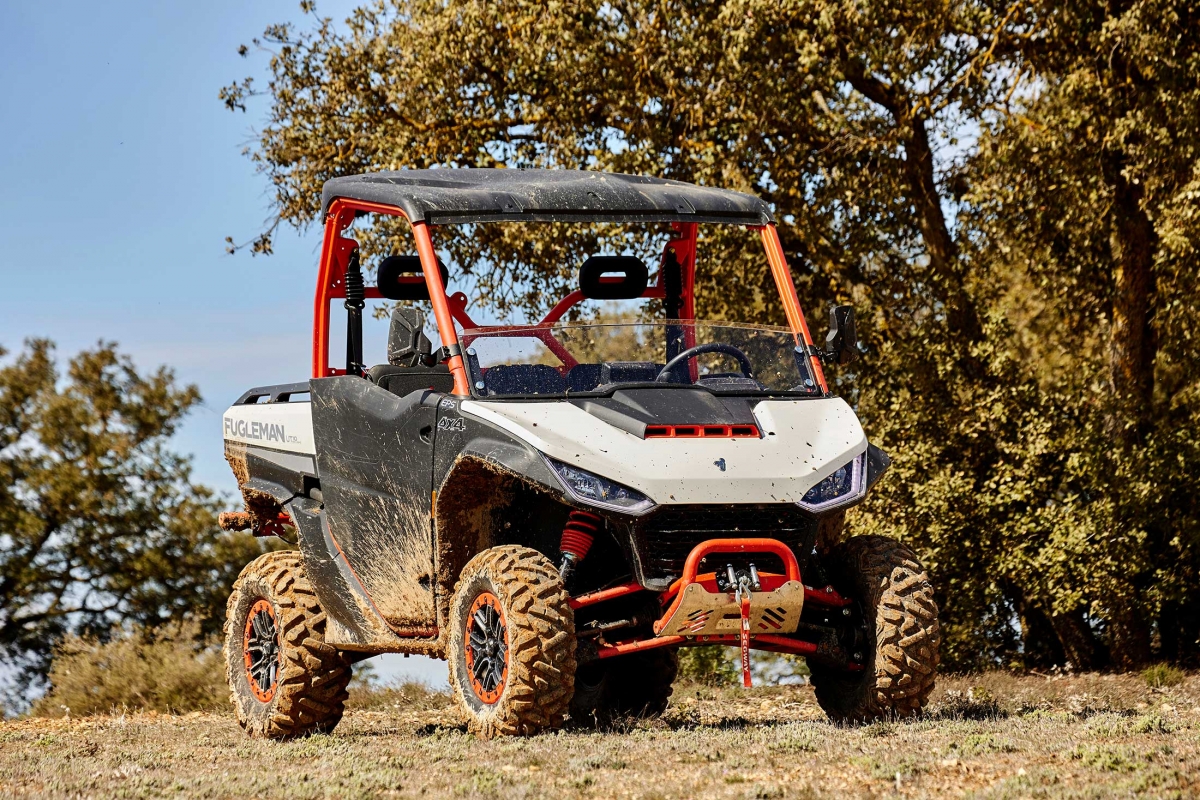 Este tipo de veículos é considerado de trabalho, e por isso é normal que só se encontrem fora das cidades, normalmente em quintas, para ajudar nas tarefas diárias. O nosso teste foi em crescendo no índice de adrenalina, começámos pelo Fugleman UT10 X: um UTV de dois lugares, com espaço de armazenamento traseiro para transporte de carga até 350 kg, com um conveniente mecanismo de báscula. Tem um motor bicilindrico com 1000 cc e 105 cv de potência. Está ainda equipado com transmissão às duas ou quatro rodas, com bloqueio de diferencial dianteiro, bola de reboque e guincho. A versão X que testámos, adicionalmente tem jantes de alumínio de 14” com Beadlock (anel de reforço que impede que o pneu saia da jante), um guincho mais potente, portas e um ecrã tátil de 10,4”.
