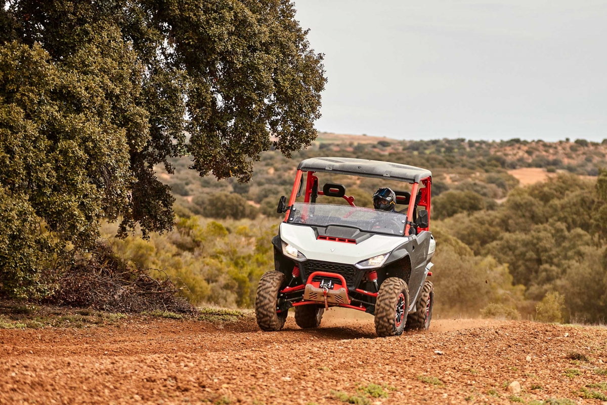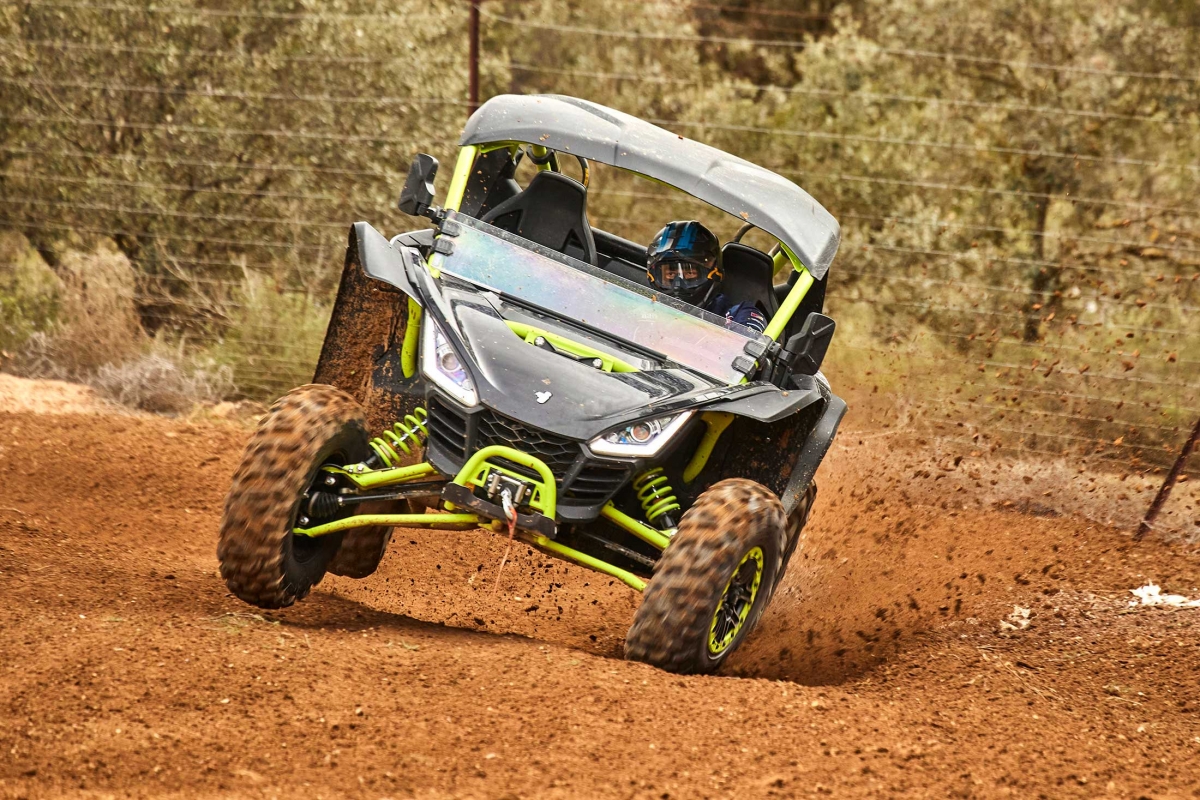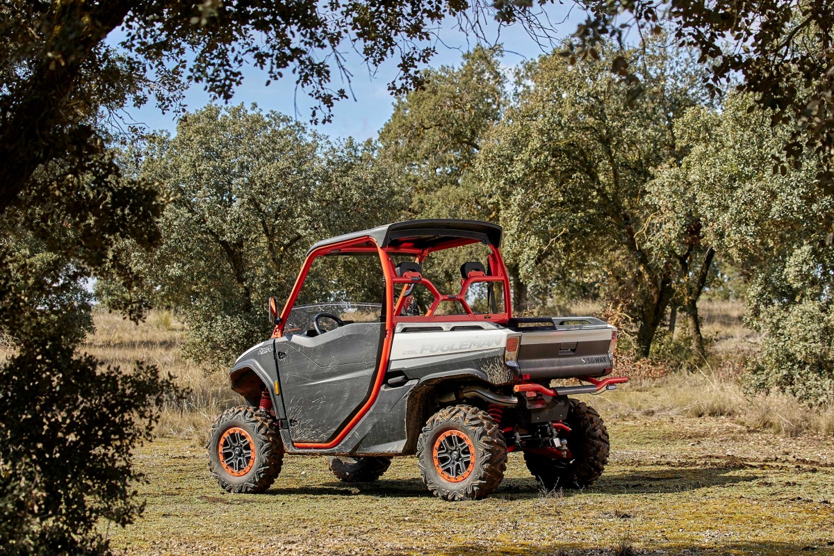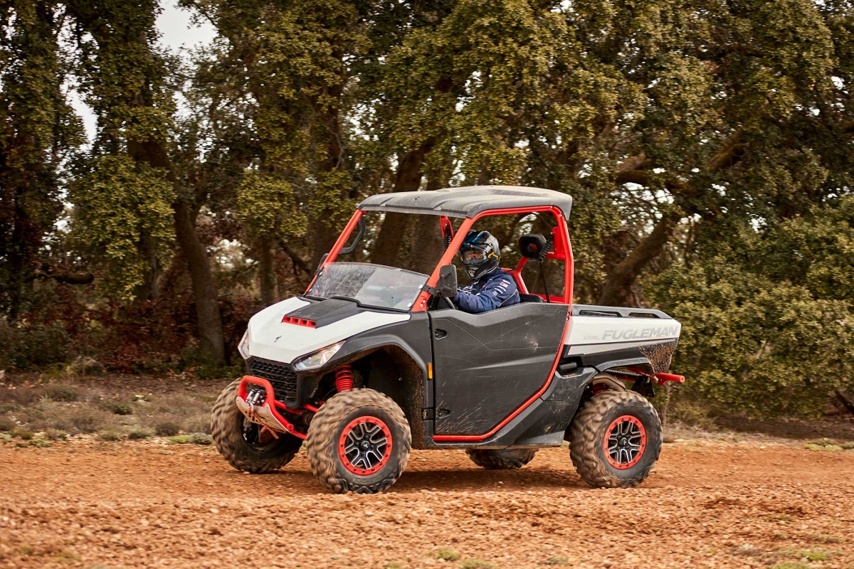 Este tipo de veículos é considerado de trabalho, e por isso é normal que só se encontrem fora das cidades, normalmente em quintas, para ajudar nas tarefas diárias. O nosso teste foi em crescendo no índice de adrenalina, começámos pelo Fugleman UT10 X: um UTV de dois lugares, com espaço de armazenamento traseiro para transporte de carga até 350 kg, com um conveniente mecanismo de báscula. Tem um motor bicilindrico com 1000 cc e 105 cv de potência. Está ainda equipado com transmissão às duas ou quatro rodas, com bloqueio de diferencial dianteiro, bola de reboque e guincho. A versão X que testámos, adicionalmente tem jantes de alumínio de 14” com Beadlock (anel de reforço que impede que o pneu saia da jante), um guincho mais potente, portas e um ecrã tátil de 10,4”.
